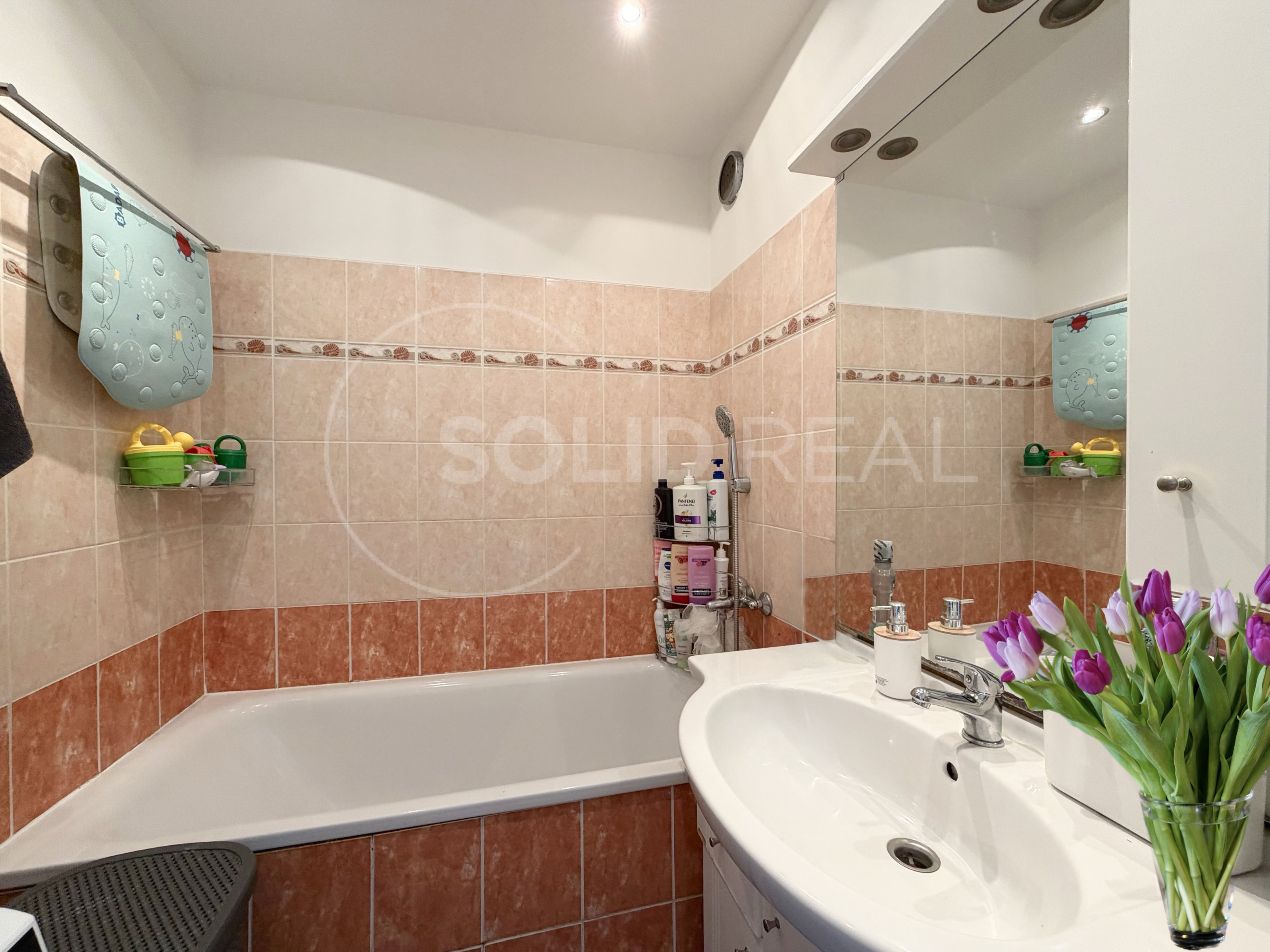 • Jádro: Udržované, vkusně obložené a vydlážděné – koupelna působí moderně.