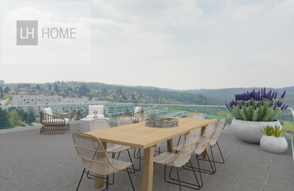 Tento byt přirozeně spojuje rovnováhu mezi pracovním a soukromým životem. Díky velkorysým terasám se navíc byt přirozeně rozšiřuje o další obytný prostor pod širým nebem.