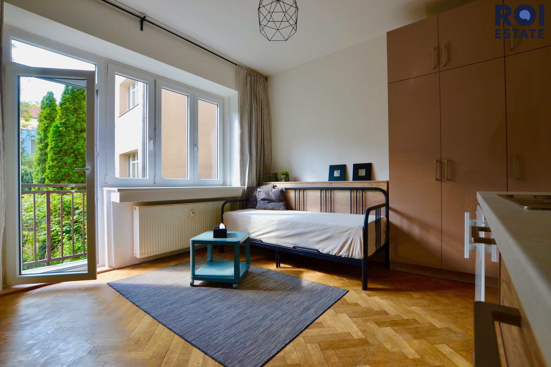 Velkou výhodou je balkon orientovaný do tichého zeleného vnitrobloku, který poskytuje příjemné soukromí a prostor pro relax.