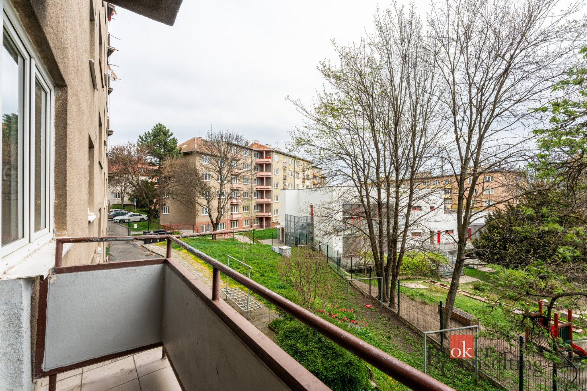 Byt se nachází v 1. podlaží (přízemí) s menší předzahrádkou. K bytu náleží také balkon a sklep. Další přidanou hodnotou je možnost využití oploceného pozemku za domem, který slouží jako společná zahrádka.