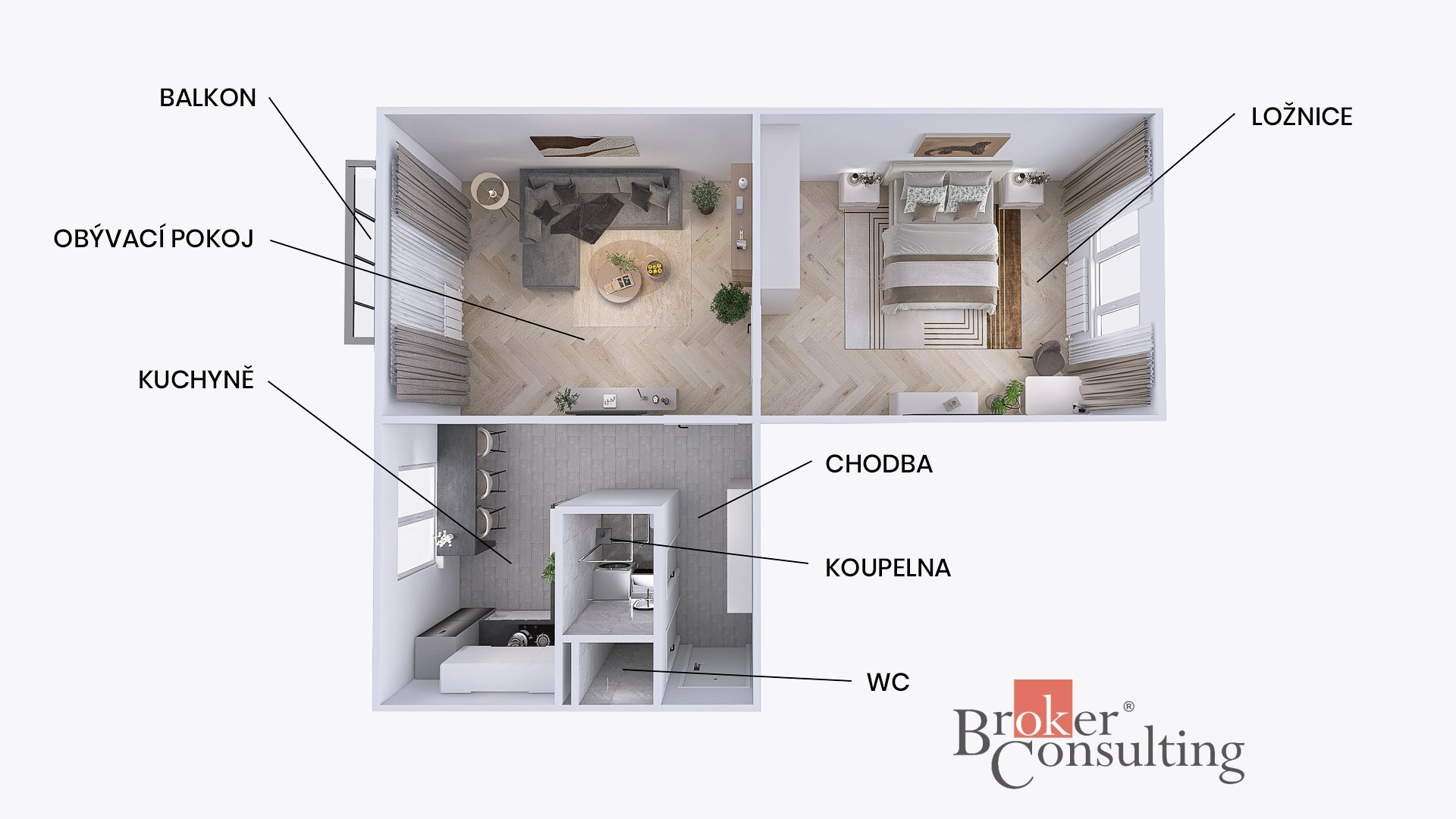 - Dispozice bytu: 2+1