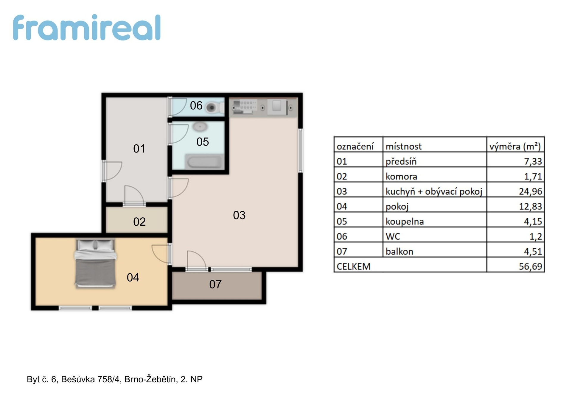 | Dispozice/podlahová plocha: | 2+kk/56 m² |