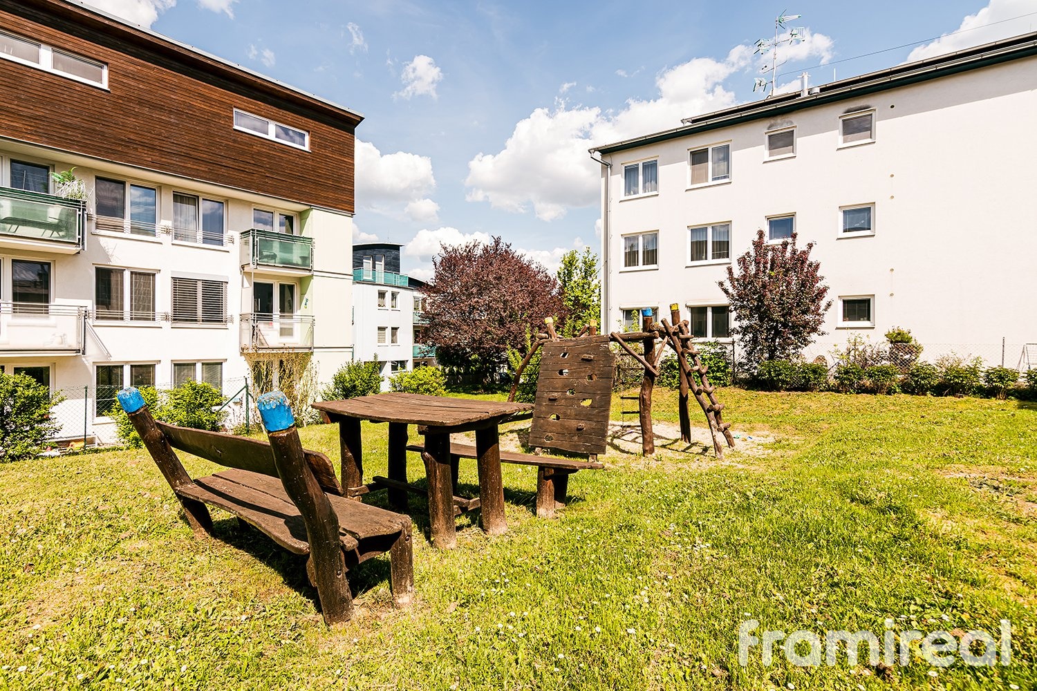 Dispozice bytu je velmi praktická. Obývací pokoj s kuchyňským koutem je propojený s balkonem orientovaným do klidné části, což vytváří příjemný prostor pro odpočinek i společné chvíle. Ložnice je oddělená, koupelna je vybavena vanou a toaleta je samostatná. Nechybí ani praktická komora přímo v bytě, ideální pro uložení sezónních věcí nebo sportovního vybavení. Komfort bydlení zvyšuje také klimatizace, která zajistí příjemné teploty i během horkých letních dní.