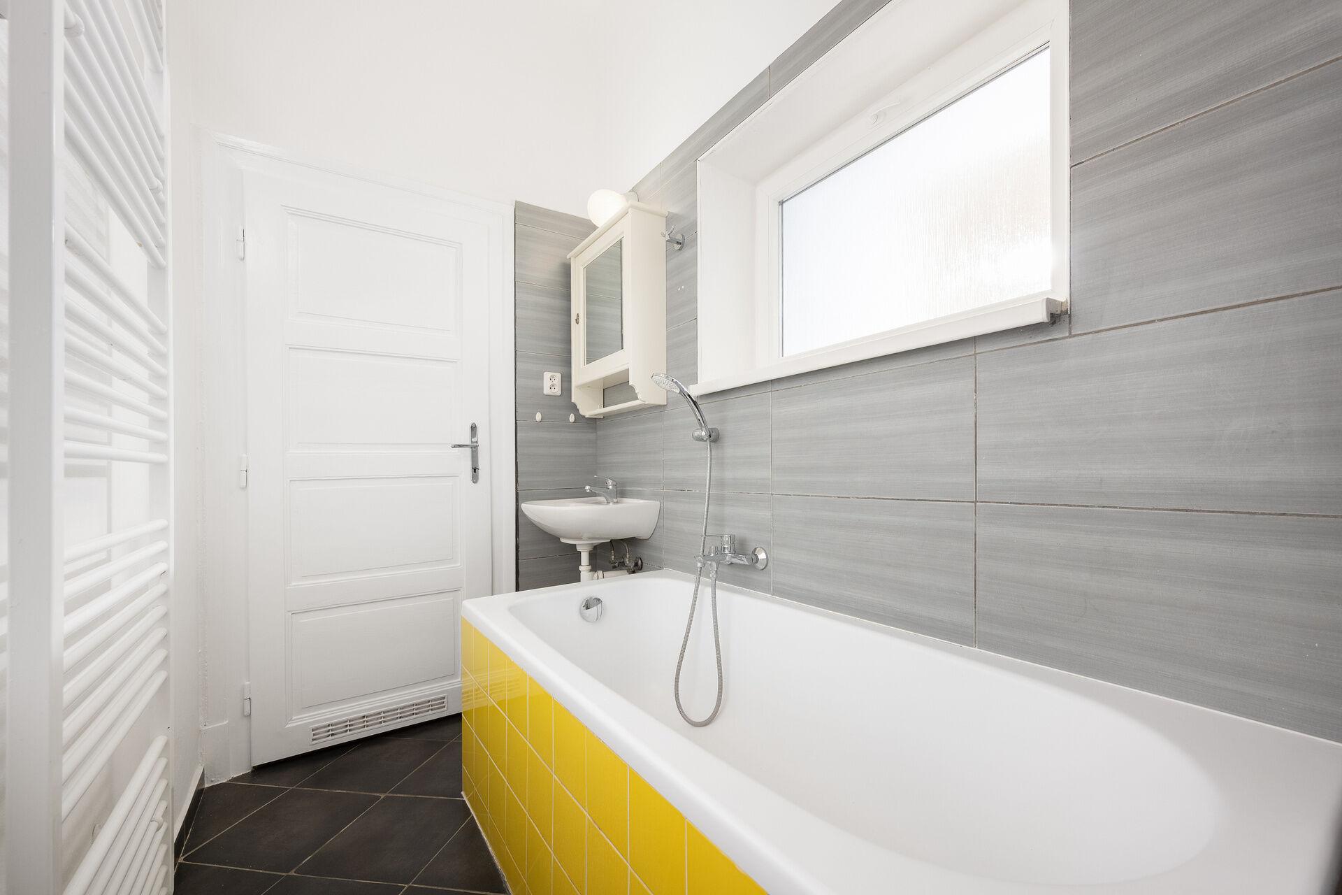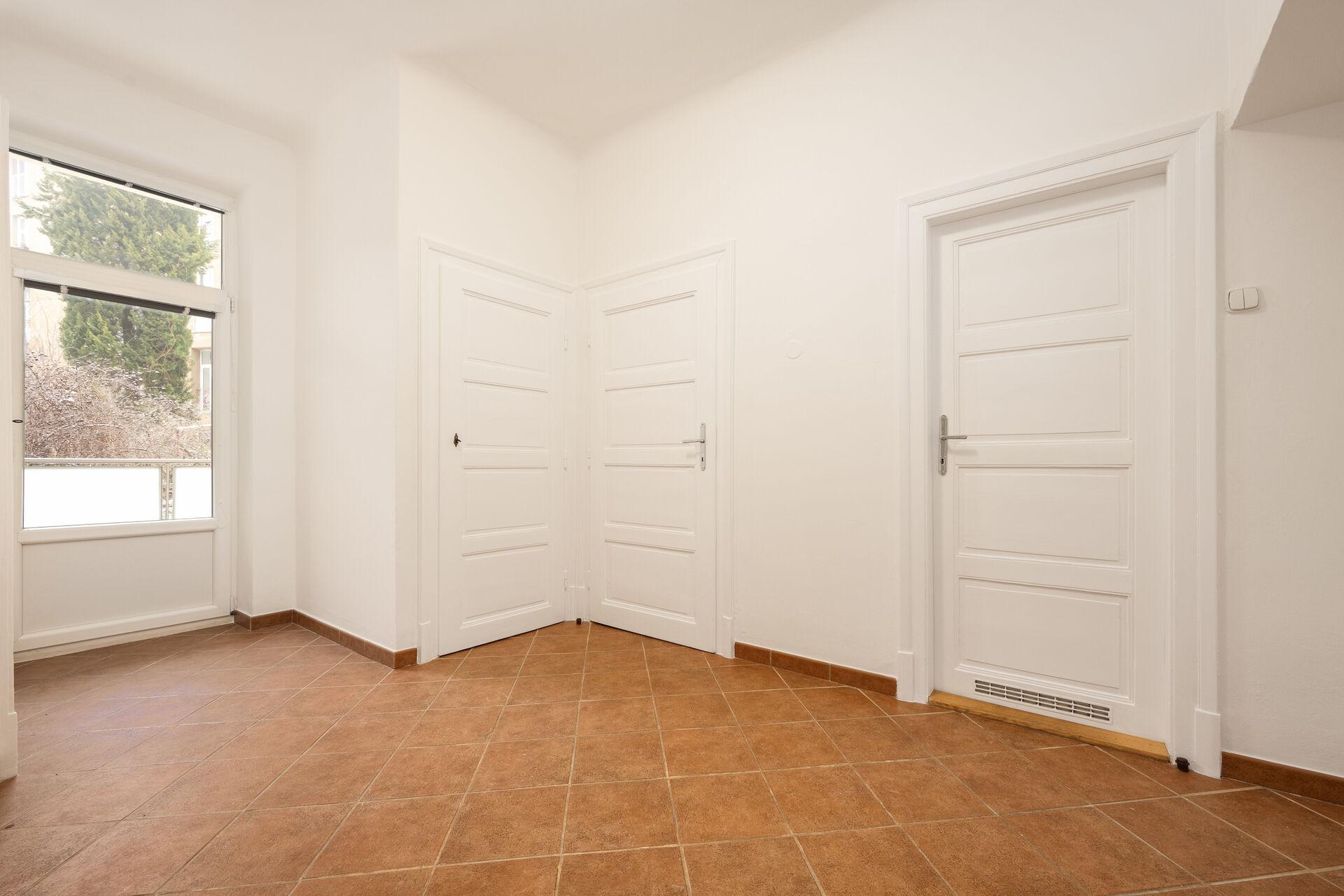 Výška stropů cca 3 metry dodává bytu mimořádnou vzdušnost a dostatek denního světla. Byt má nepopsatelnou atmosféru a klid, který je cítit ihned po vstupu a je dále umocněn orientací do tichého vnitrobloku byt je téměř součástí zahrady.