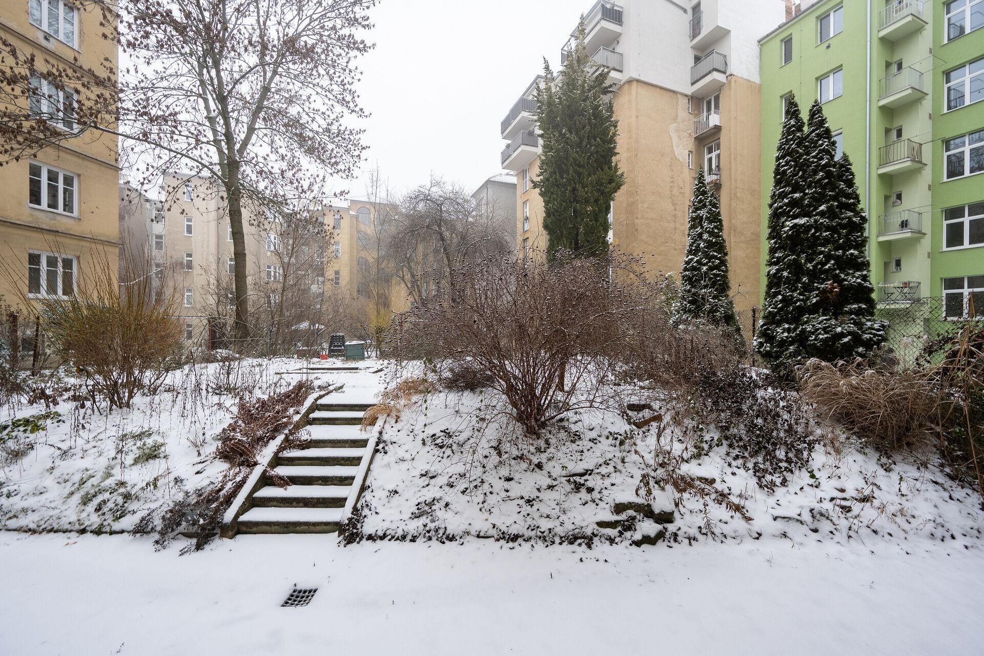 Byt má podíl na užívání společné zahrady ve vnitrobloku, která je téměř na dosah ruky z bytu. Zahrada nabízí ideální prostor pro odpočinek, relaxaci, posezení či letní grilování. Jednosměrná ulice zajišťuje klidné bydlení bez rušivého provozu. Velkou předností tohoto bytu jsou náklady ty činí 2286,- Kč + individuální záloha na plyn a elektřinu.