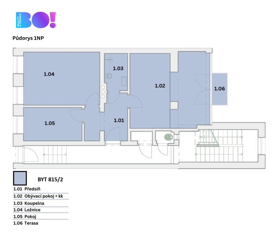 Dispozice a výměry bytových jednotek: