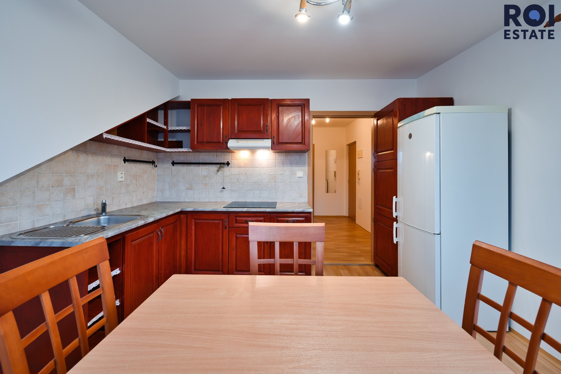 Dispozice 1+1 nabízí prostorný obývací pokoj/ložnici, samostatnou kuchyň, koupelnu s vanou a vstupní chodbu. Byt je čistý, udržovaný a připravený k okamžitému bydlení, ale zároveň nabízí prostor pro vlastní úpravy.