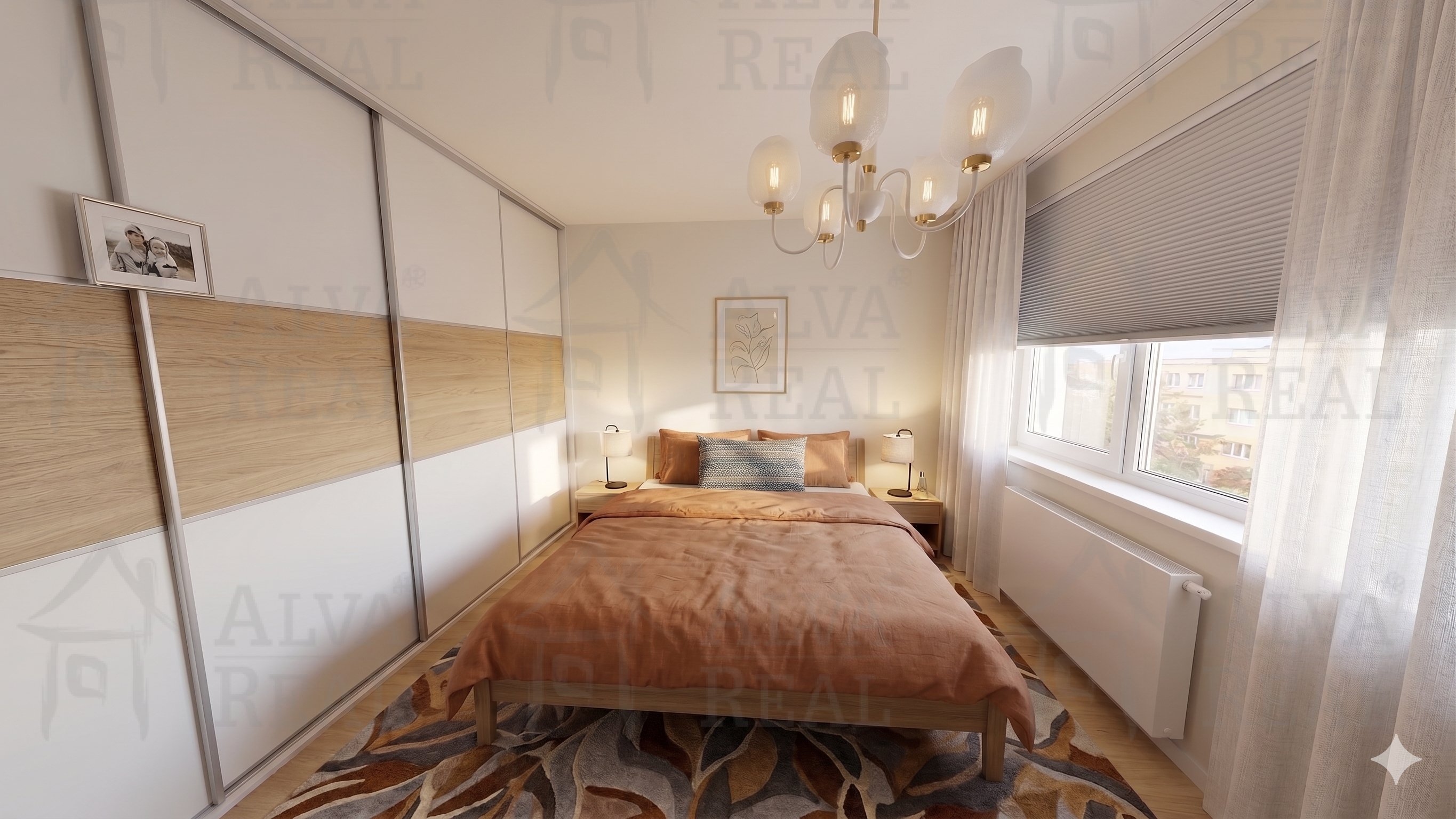 Dispozice: Obývací pokoj 19,90 m²; ložnice 12,00 m²; pokoj 12,00 m²; kuchyně 8,60 m²; koupelna 2,50 m²; WC 1,4 m²; komora 0.9 m²; spíž 0,8 m²; chodba 12,60 m². Velkou výhodou je prostorná lodžie o výmeře 4,7 m², která nabízí prostor pro relax.