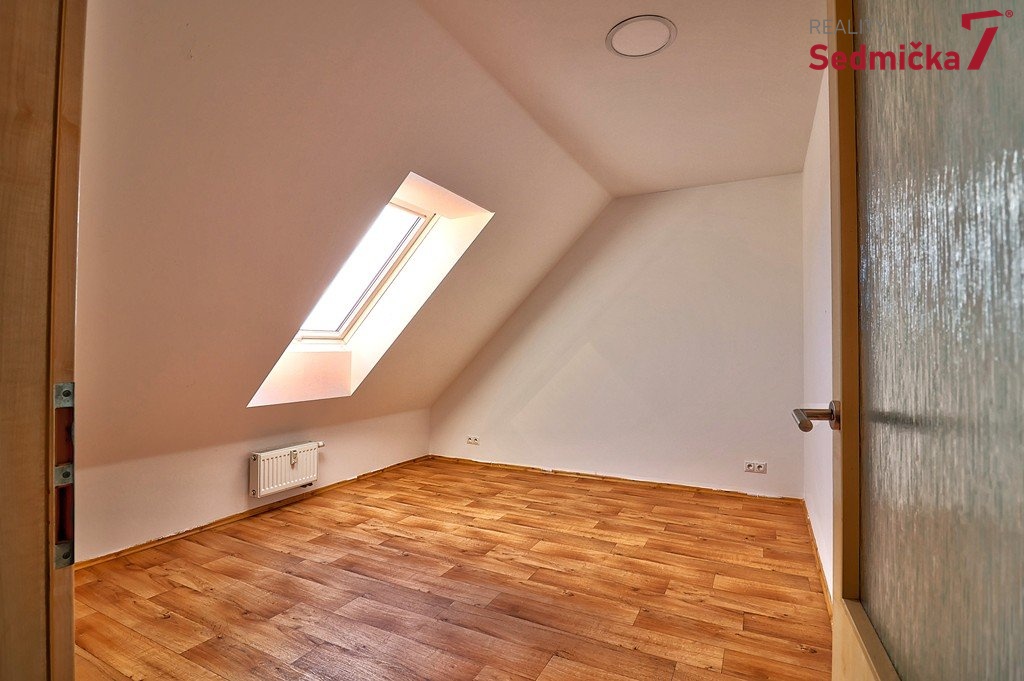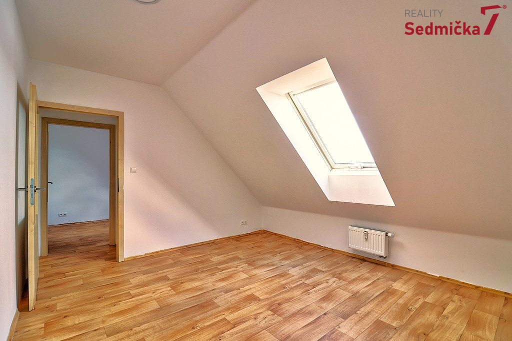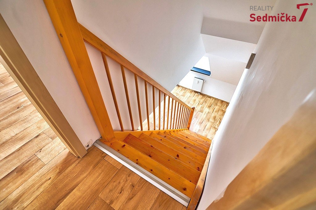 Ve spodním patře bytu je obývací pokoj s kuchyňským koutem, koupelnou s WC a chodbou. Z obývacího pokoje se po schodišti jde do druhého patra bytu se dvěma samostatnými pokoji. Z bytu je hezký výhled směrem na Vinohrady.