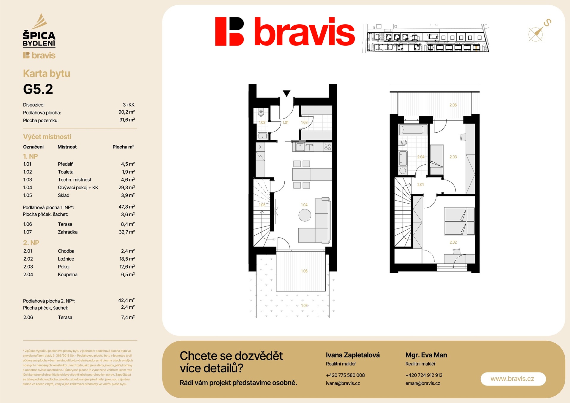 Parametry bytu G.5.2, nacházejíího se ve vila domě G, o dispozici 3+KK (90,2 m²), které Vás nadchnou: