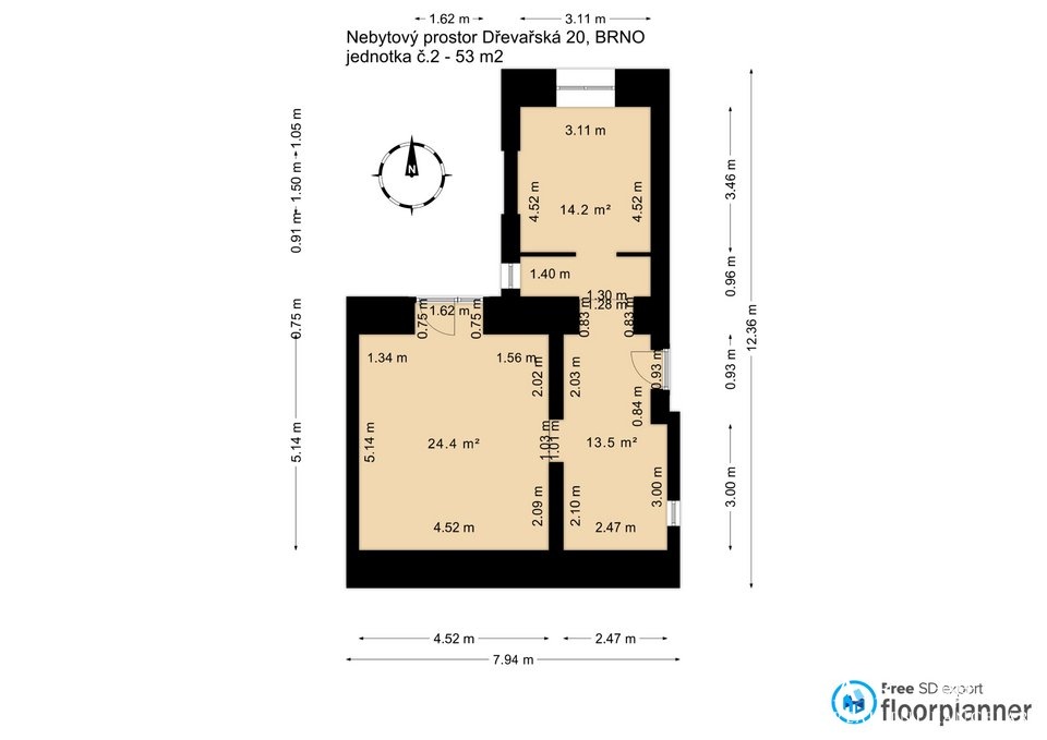 Prodej nebytového prostoru k rekonstrukci 53 m², + terasa 27 m2, Brno - Veveří, ul. Dřevařská