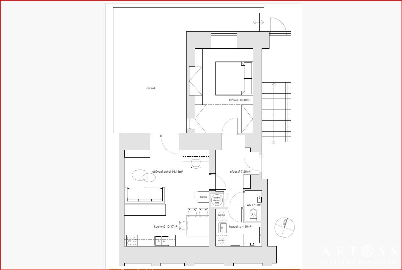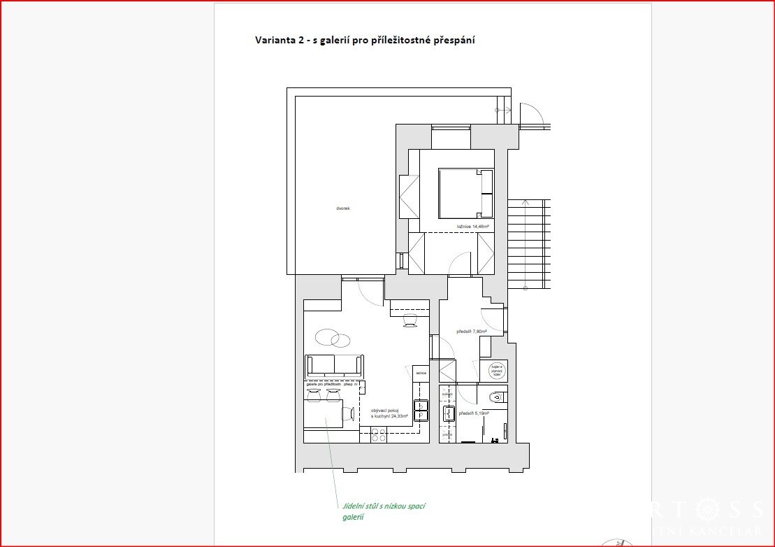 - Dispozice bytu: 2+kk
