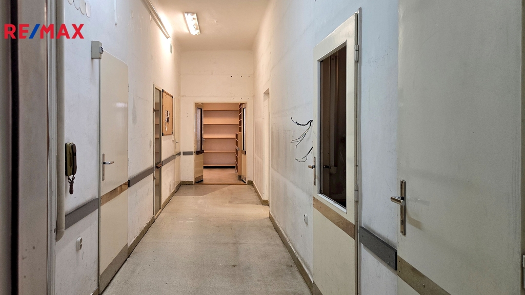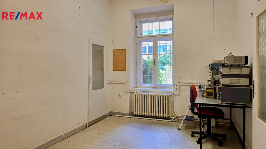 Jednotka nabízí užitnou plochu 98,6 m2, k dispozici je navíc sklep o velikosti 8,95 m2, celková plocha tak činí 107,55 m2. Velkým benefitem je přímý vstup z ulice, který zajišťuje skvělou dostupnost pro klienty či zákazníky, zároveň je možné využívat i klasický vstup z chodby domu. Dispozice tvoří čtyři místnosti, chodba, koupelna, WC a dvě komory. Prostory jsou v původním stavu a jsou ideální k celkové rekonstrukci dle vlastních představ a potřeb – ať už pro podnikání, kanceláře, služby nebo přestavbu na bydlení. Elektroinstalace je již v mědi, vytápění zajišťuje plynový kotel napojený na ústřední topení.