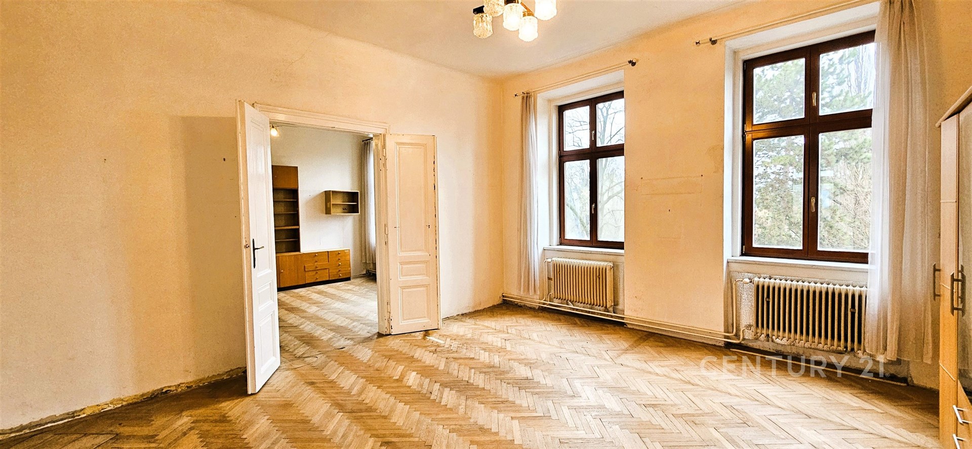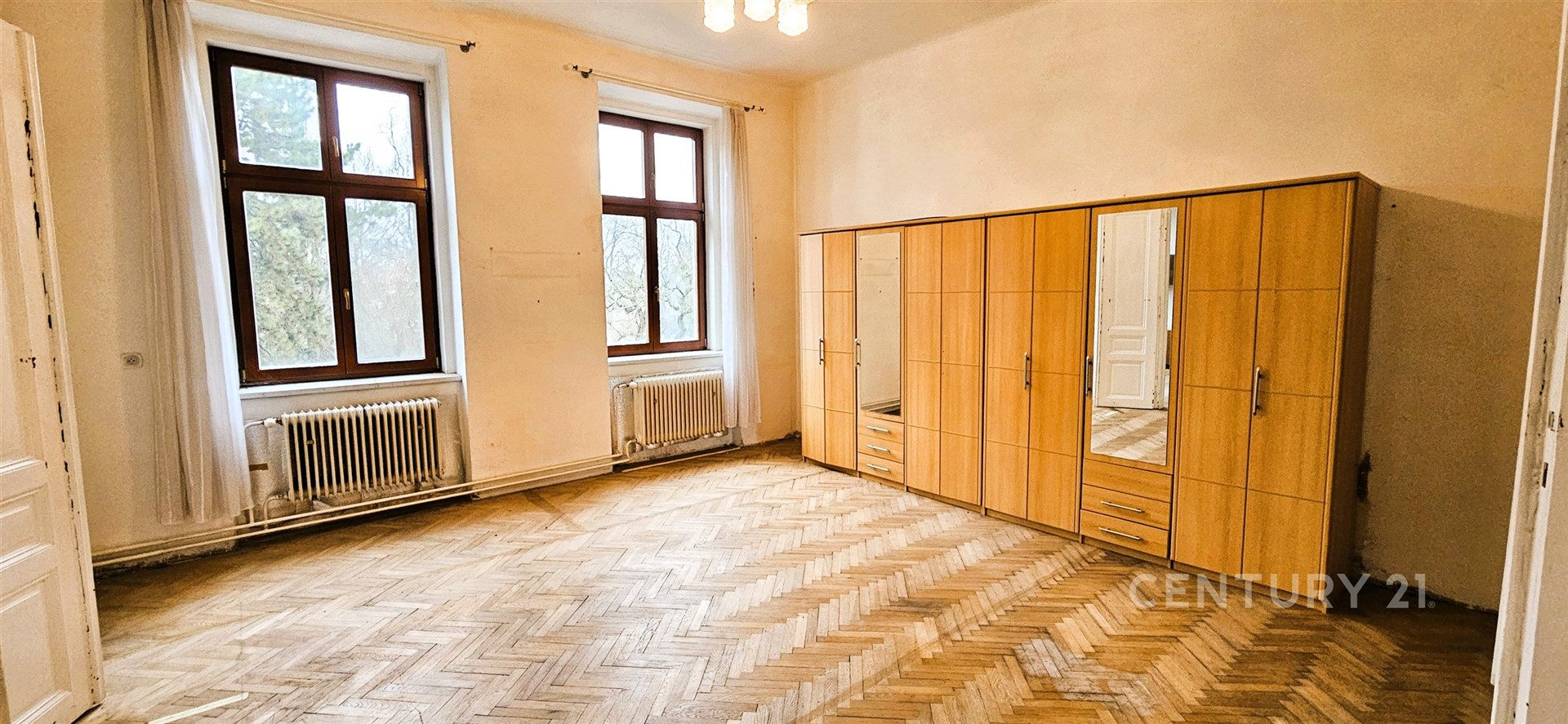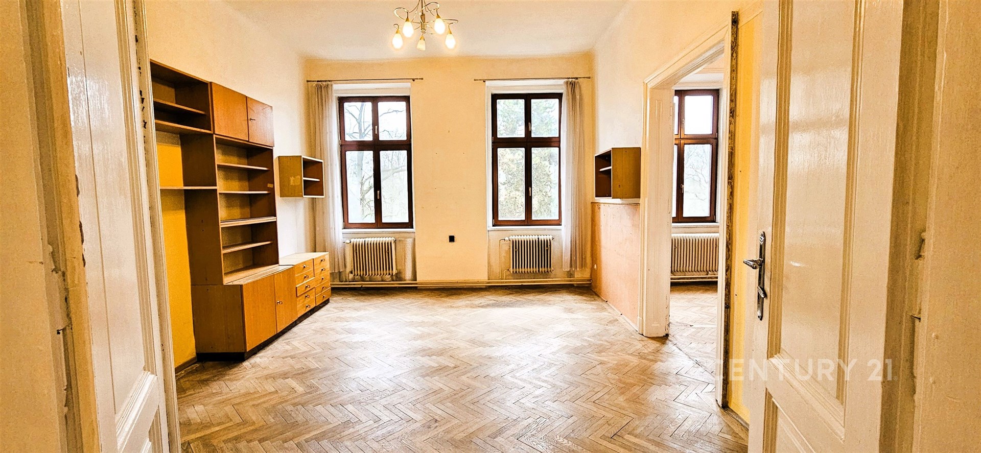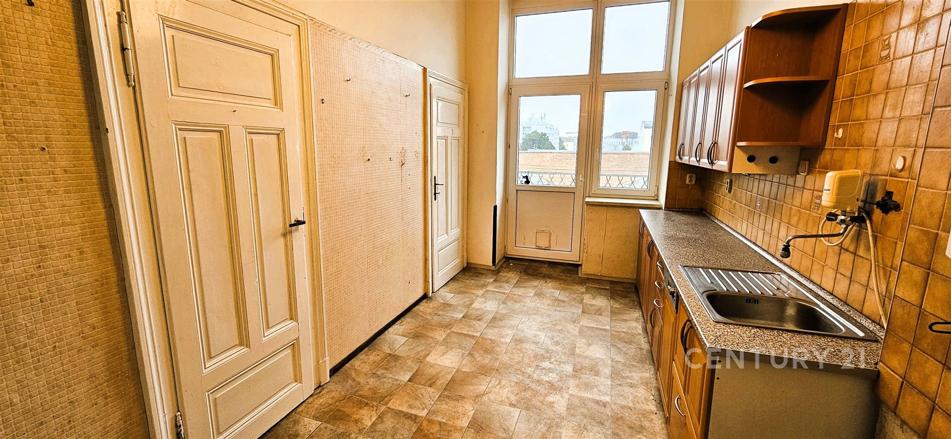 Celková plocha je 119 m². Byt je v původním stavu a je vhodný k rekonstrukci. Z kuchyně je přístupná spíš a také další menší místnost s oknem, sloužící jako úložný prostor nebo může být např. jako pracovna. Z kuchyně je také vstup na balkón s výhledem do vnitrobloku, s orientací na jižní stranu. Koupelna s vanou je po rekonstrukci, samostatné WC. Vytápění je řešeno plynovým kotlem v bytě, ohřev teplé vody v koupelně bojlerem. K bytu náleží sklep.
