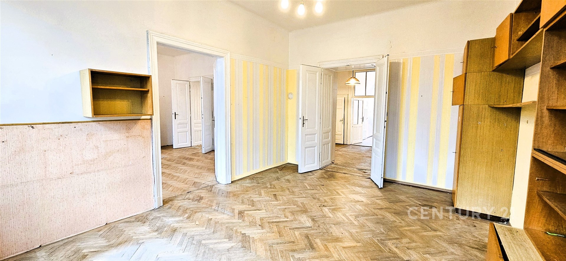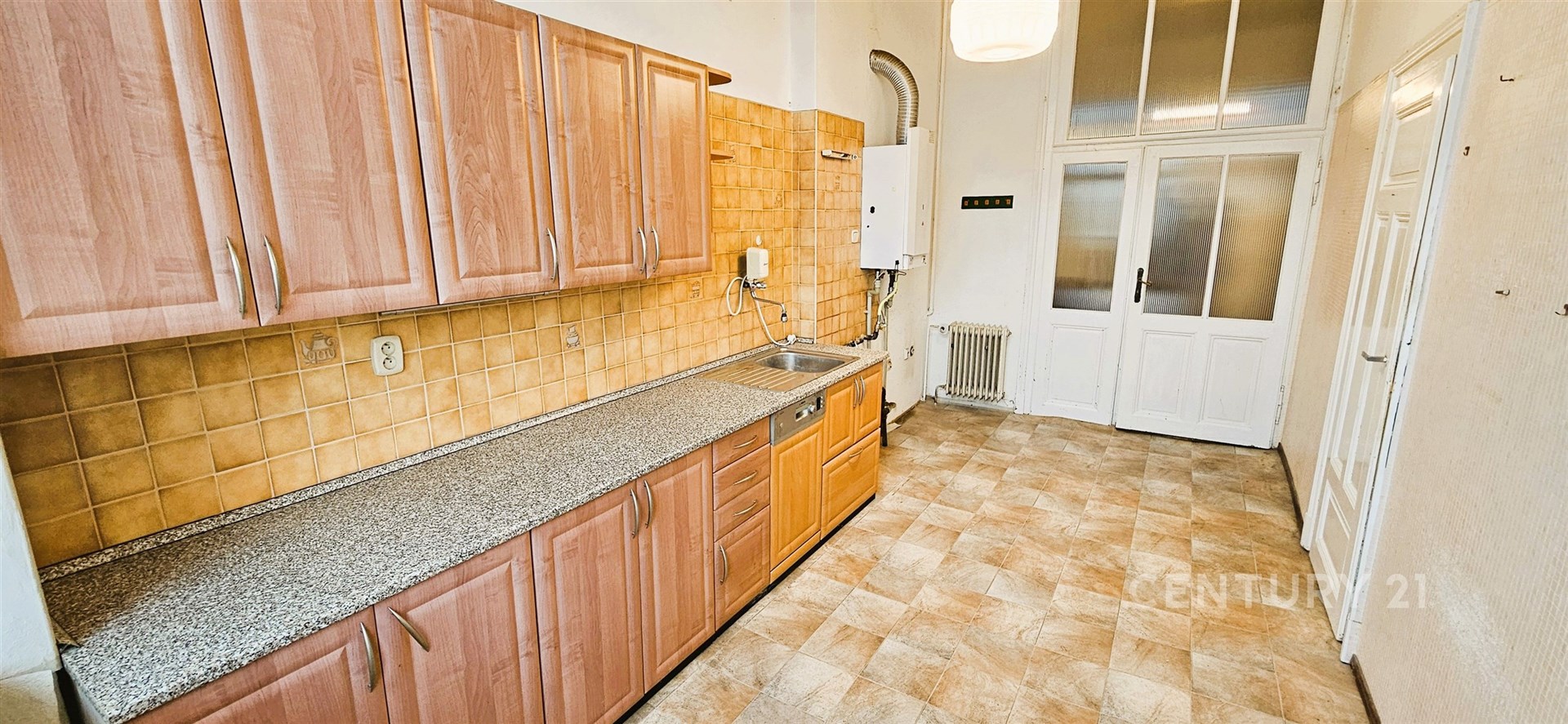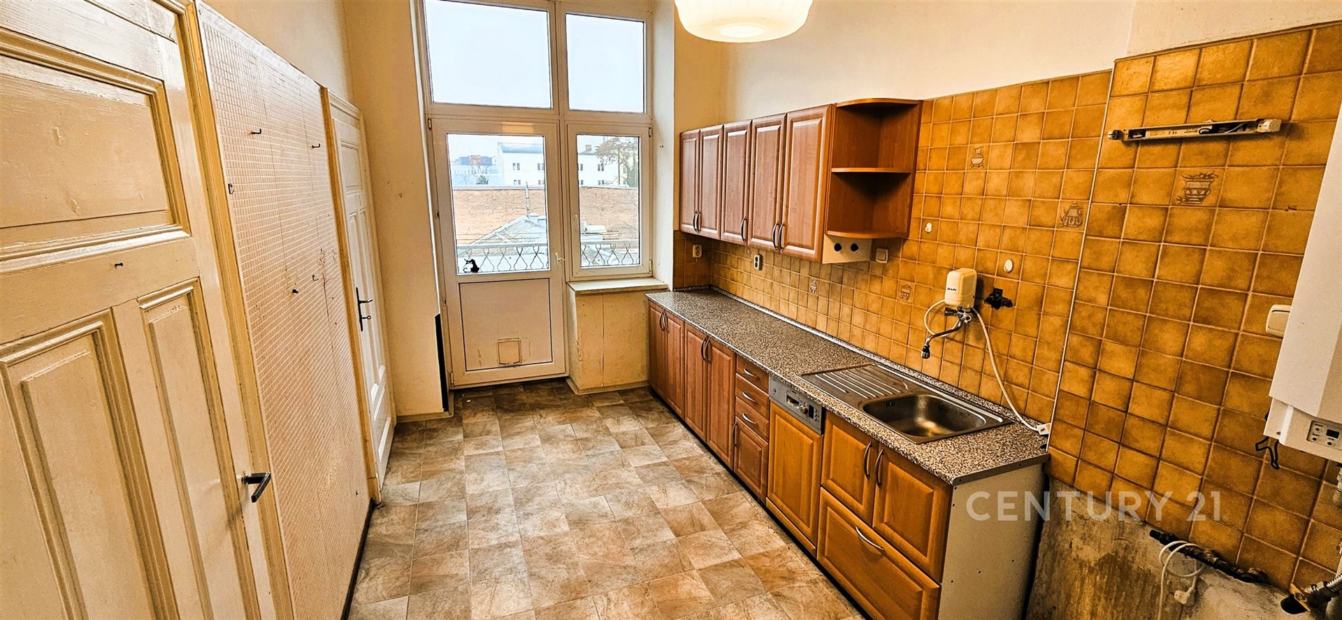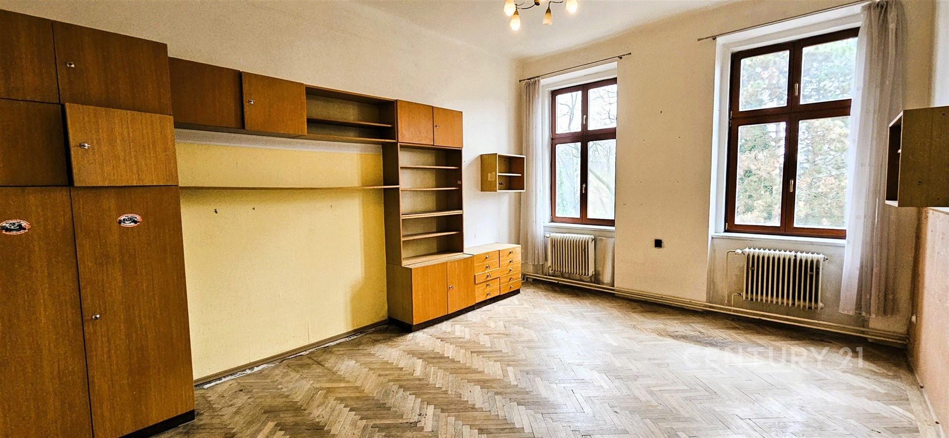 Celková plocha je 119 m². Byt je v původním stavu a je vhodný k rekonstrukci. Z kuchyně je přístupná spíš a také další menší místnost s oknem, sloužící jako úložný prostor nebo může být např. jako pracovna. Z kuchyně je také vstup na balkón s výhledem do vnitrobloku, s orientací na jižní stranu. Koupelna s vanou je po rekonstrukci, samostatné WC. Vytápění je řešeno plynovým kotlem v bytě, ohřev teplé vody v koupelně bojlerem. K bytu náleží sklep.