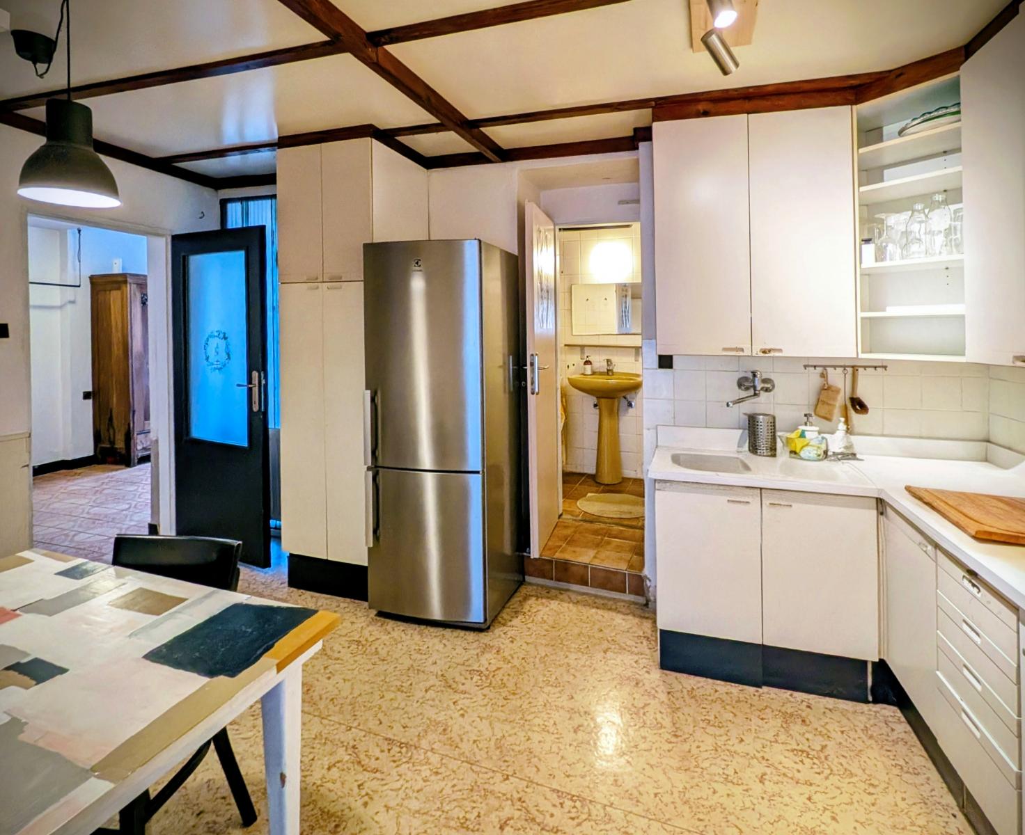 1.NP - PP 92 m2 + garáž; vstup do domu, chodba, hala 19m2, pokoj 15m2, pokoj se spací nikou 33m2, kuchyně 12m2, koupelna společná s toaletou, vstup do sklepa a do zahrady, vstup na schodiště do 1.NP;