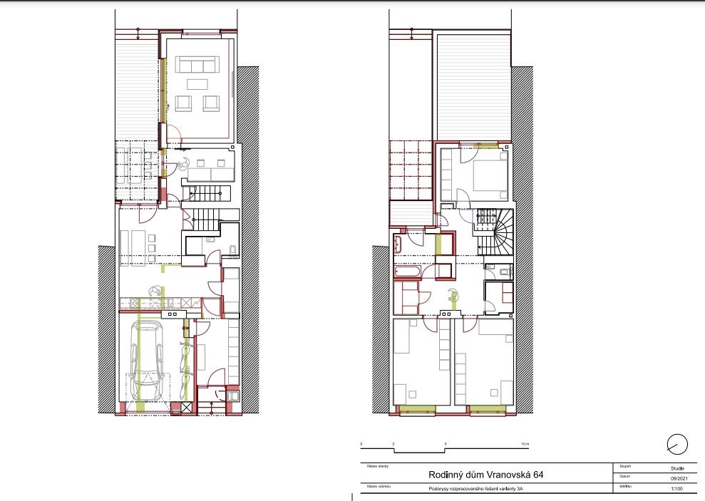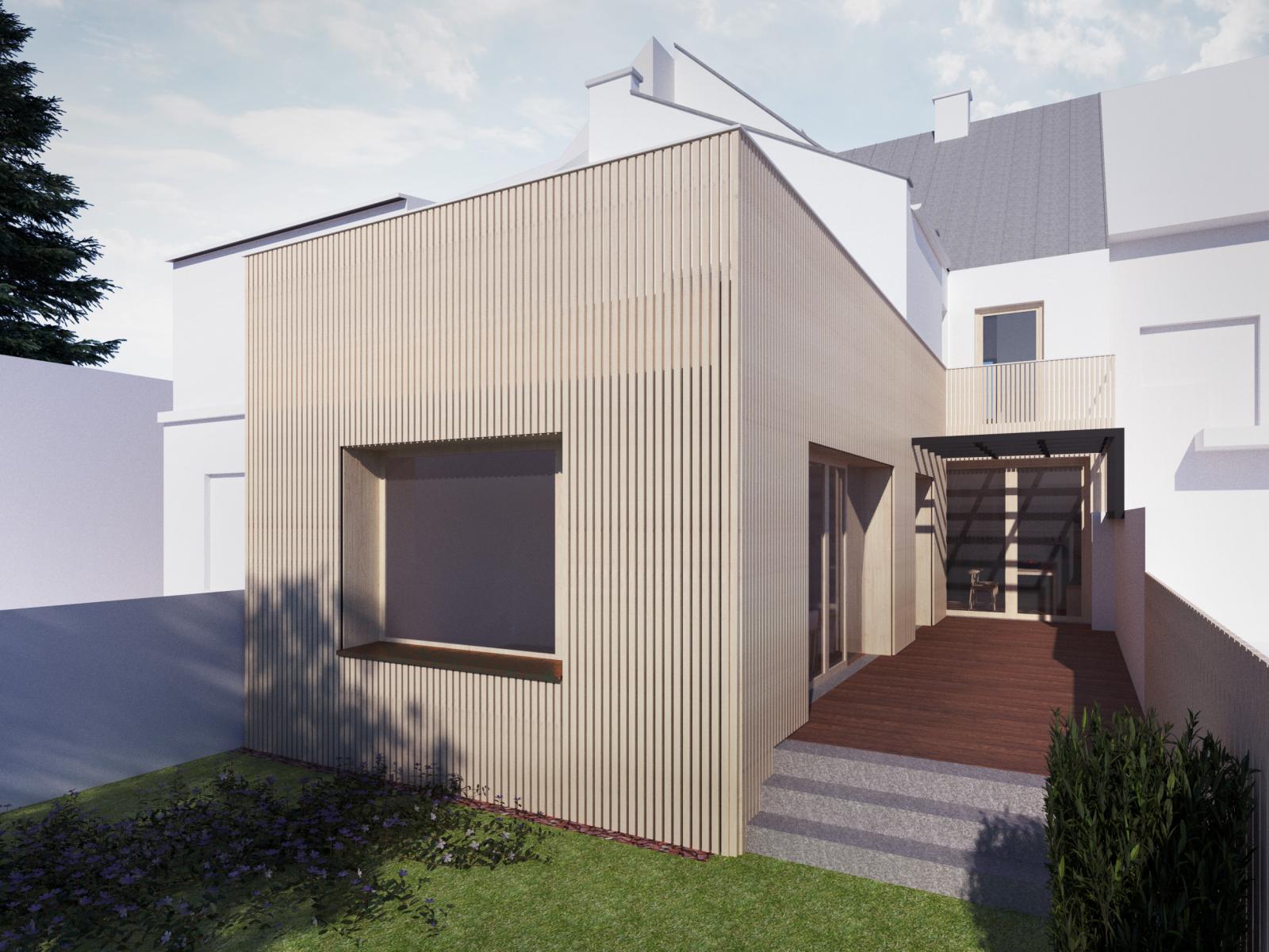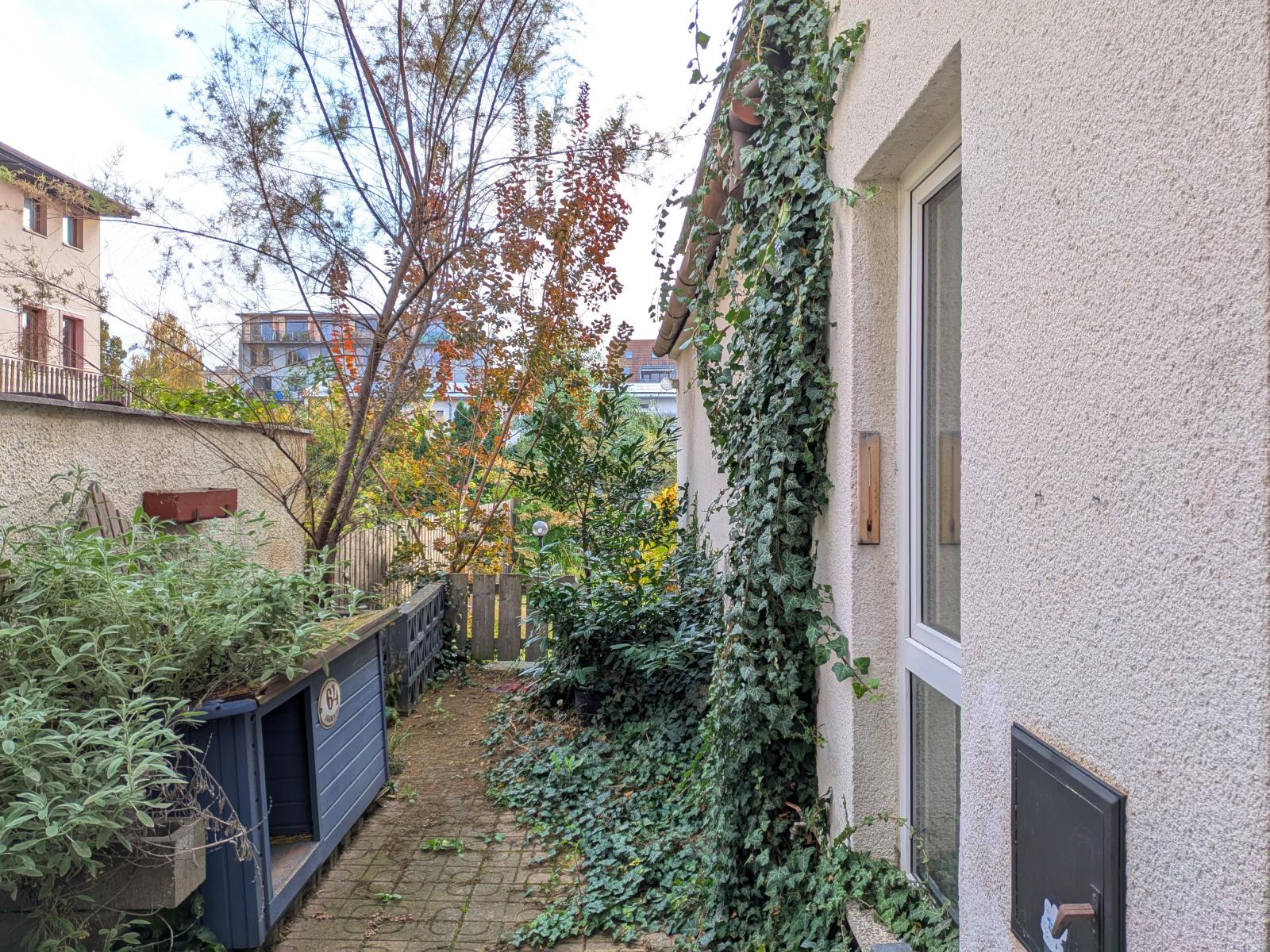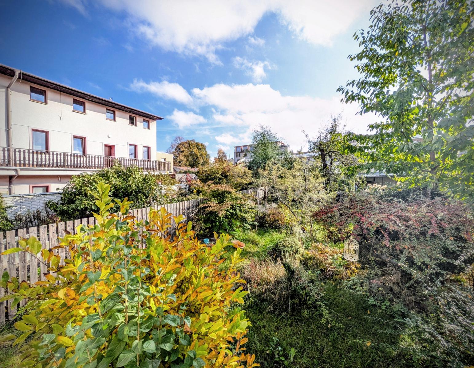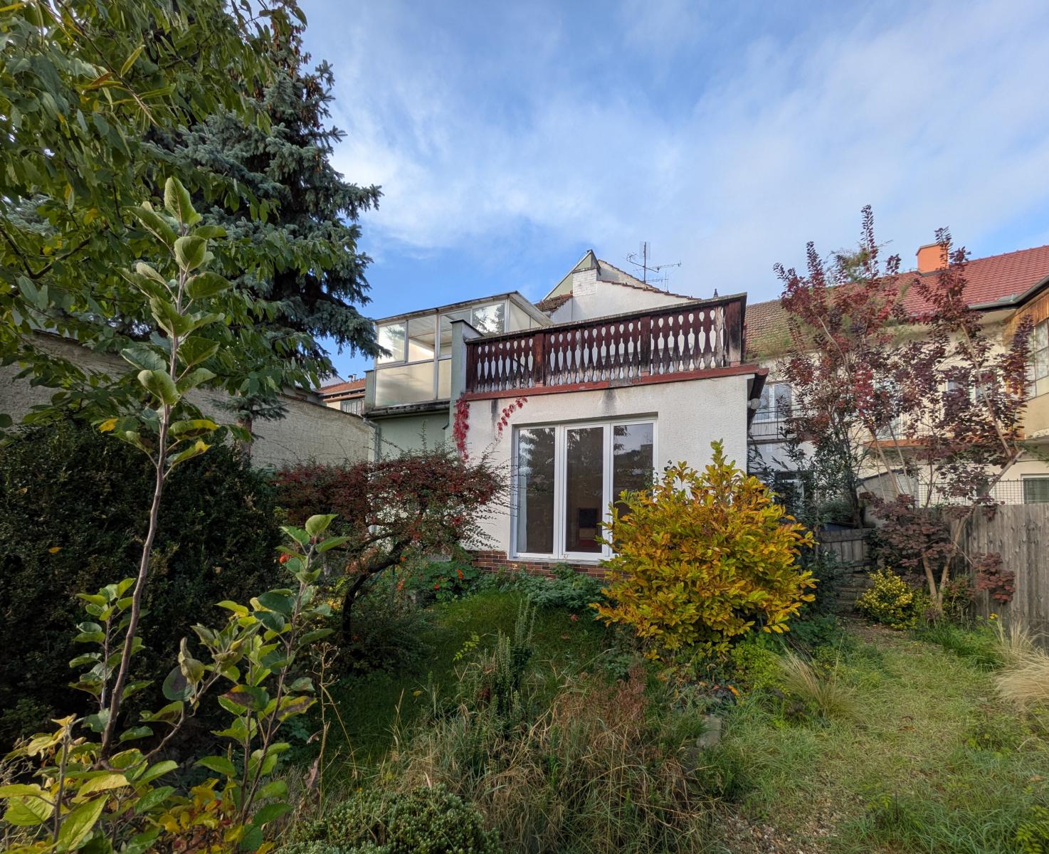 Částečně podsklepený řadový dům, který byl postaven na počátku minulého století, prošel v průběhu let několika stavebními úpravami (vybudování garáže, výměna oken, nové rozvody odpadů a částečně elektřiny, rekonstrukce 2.NP). Zastavěná plocha domem činí 150 m2, výměra zahrady 158 m2, zahradní stavba 15 m2. V zahradě je studna, která nyní slouží k zalévání zahrady, v budoucnu se počítá s vybudováním retenční nádrže a využití užitkové vody v domě. Zahradní stavba je napojena el. energii, nyní možnost vytápění kamny na tuhá paliva.