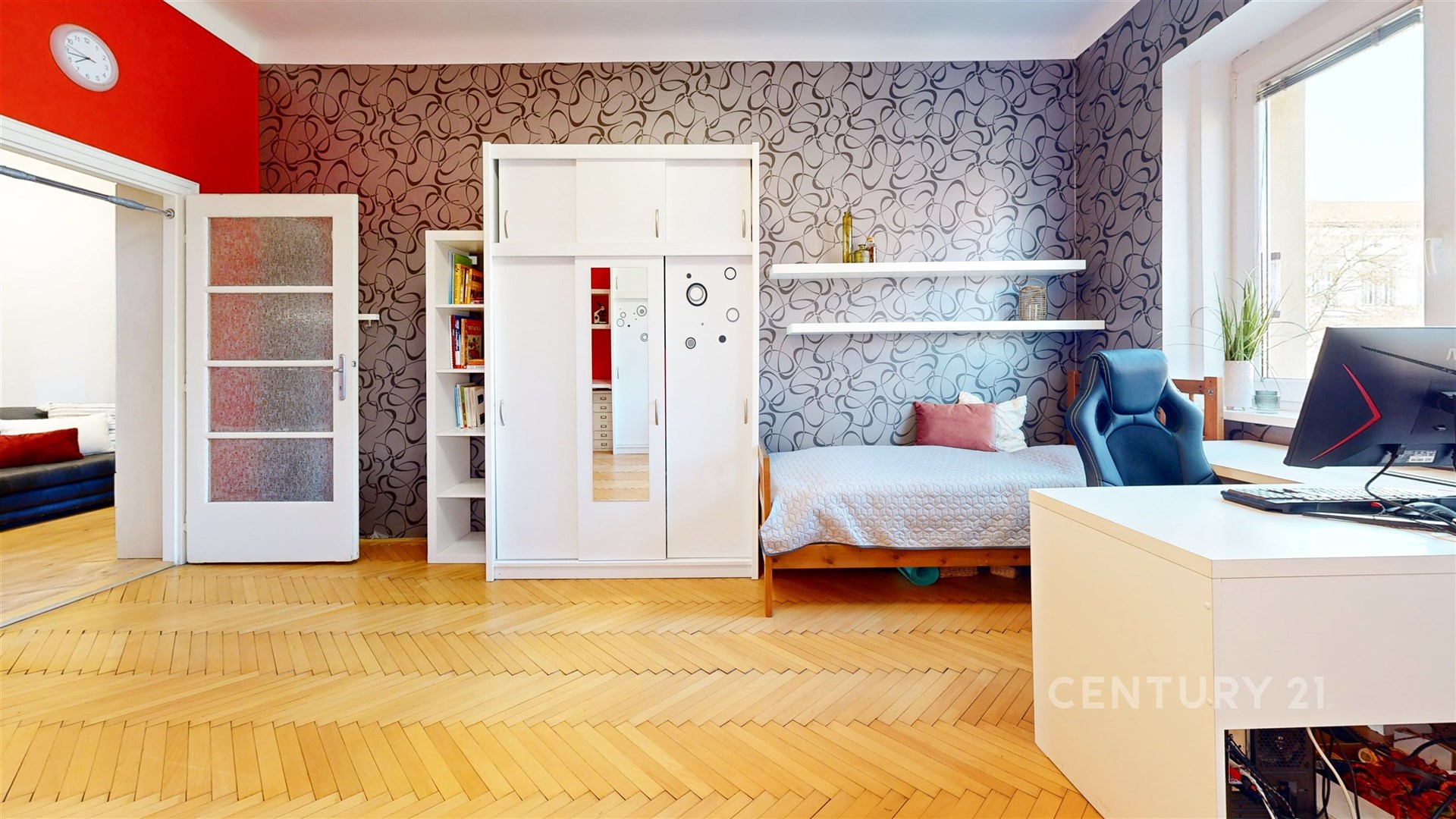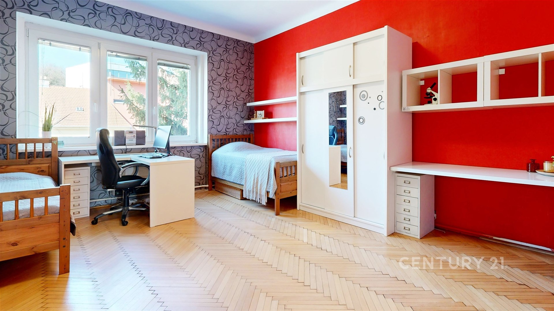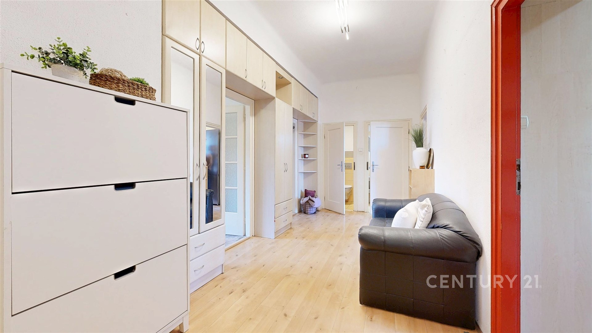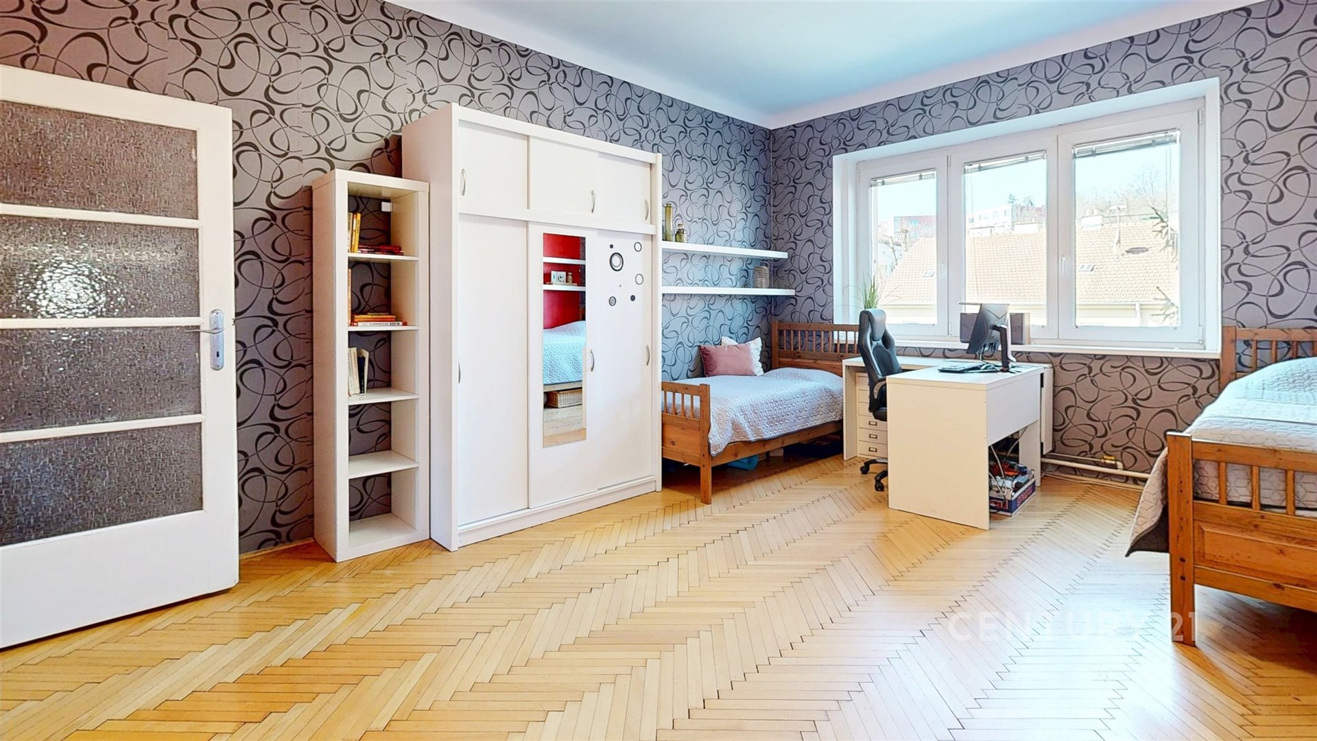 Kompaktní dispozice bytu nabízí samostatné vstupy z prostorné haly do všech pokojů, šatny, rekonstruované koupelny a odděleného WC. V případě potřeby lze zpřístupnit nyní sádrokatronem zaslepené dveře mezi místnostmi 5 a 6 (viz 3D plánek ve fotografiích). Z kuchyně se pak vstupuje na terasu s nádherným výhledem na Petrov, Špilberk a stadion SK Moravská Slavia Brno.