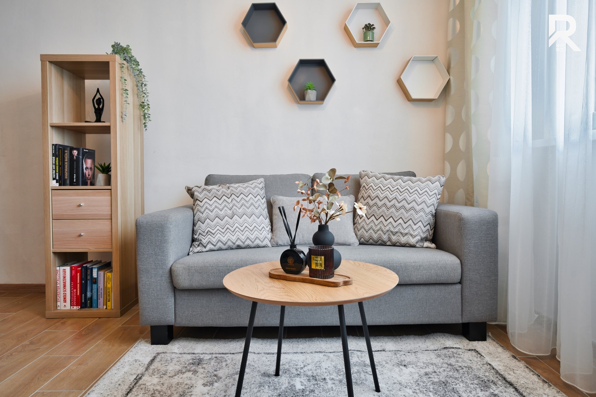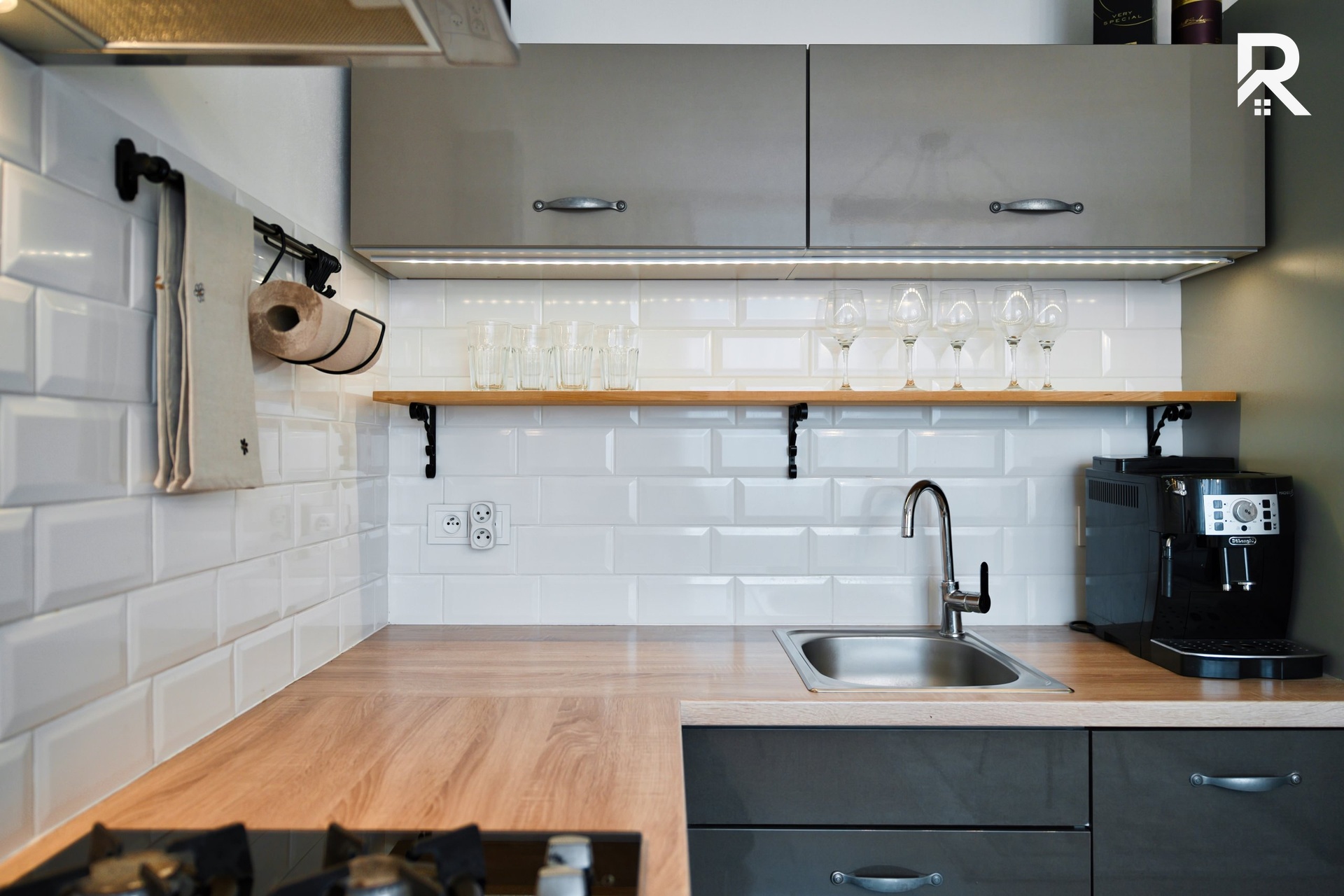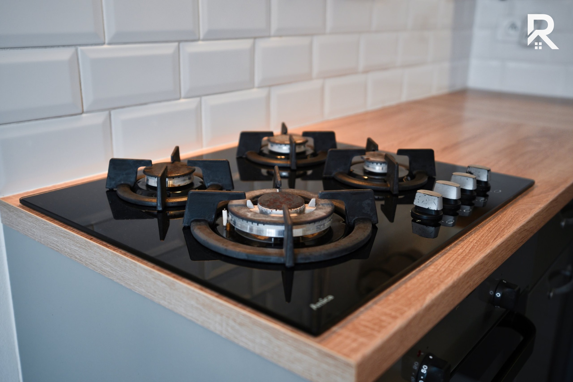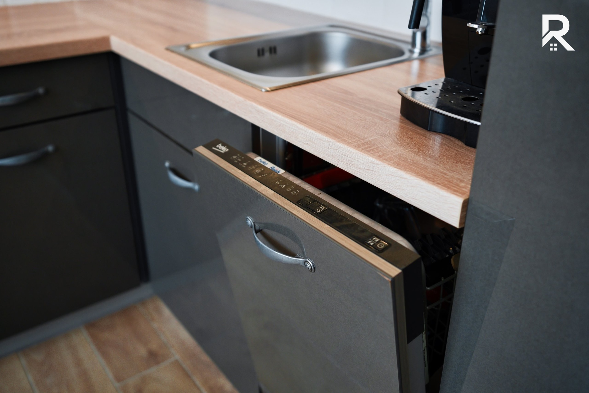 Chodba ústí do světlého obývacího prostoru s kuchyňským koutem, kde majitel při rekonstrukci nešetřil nápady ani kvalitou. Design a promyšlené barevné kombinace vytváří příjemnou atmosféru, ve které se budete cítit opravdu skvěle. Kuchyňská linka je plně vybavená spotřebiči – najdete tu myčku, lednici s malým mrazákem, elektrickou troubu i plynovou varnou desku. V prostoru je dostatek místa na pohodlné posezení s televizí, menším křeslem i stolem. Z obývacího pokoje plynule přecházíte do ložnice, která pojme nejen prostornou postel, ale i šatní skříň a pracovní kout.