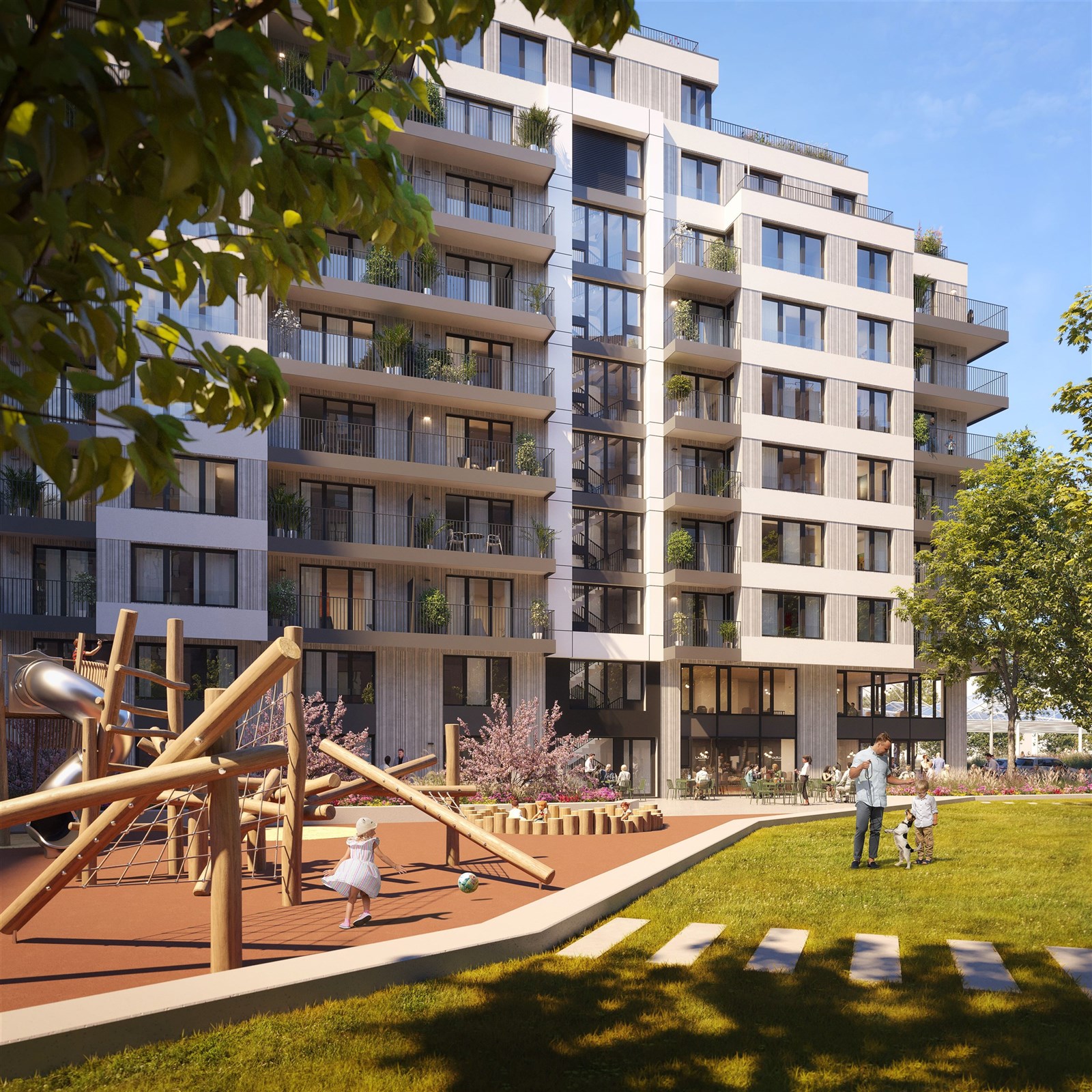 První etapa projektu nabídne celkem 260 promyšlených jednotek – od útulných 1+kk pro první bydlení až po rodinné 4+kk a prémiové mezonety v nejvyšších patrech. Většina bytů a ateliérů disponuje balkonem, přízemní jednotky nabízejí soukromé předzahrádky. Od devátého patra výše pak díky unikátnímu tvaru budovy vznikají prostorné terasy s dechberoucími výhledy na široké okolí a dostatkem místa pro trávení volného času. Jsou vybaveny integrovanými květníky, které zajišťují soukromí a nechybí ani praktický venkovní úložný prostor. V přízemí najdete komerční prostory pro služby, které zpříjemní život rezidentů. Samozřejmostí jsou garážová stání, sklepy, kolárna, myčka kol i uzavřený vnitroblok plný zeleně s dětským hřištěm a relaxačními zónami.