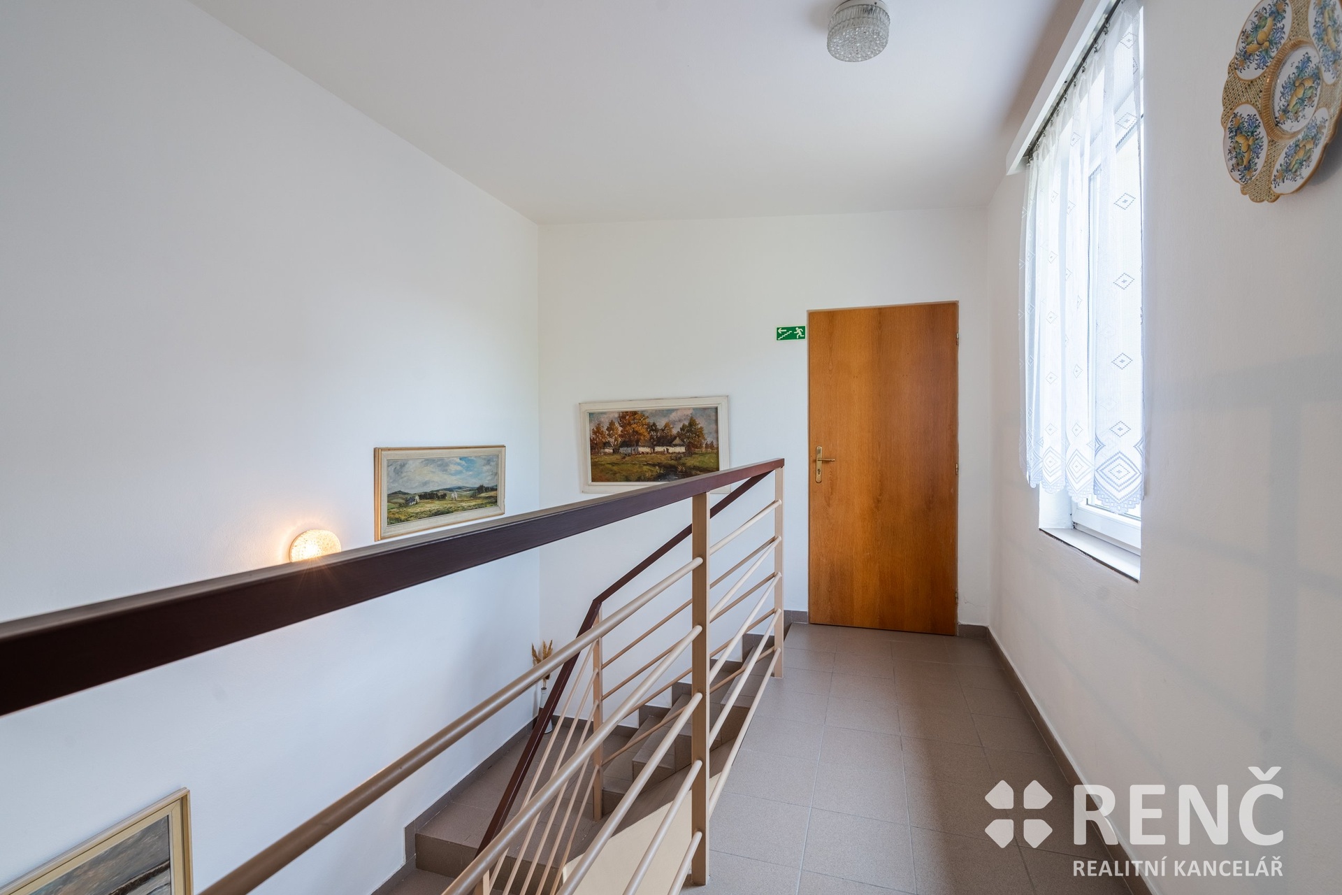 III.NP (2.patro): Vnitřním schodištěm je přístupné také 2. patro nemovitosti, kde se nachází kancelář o ploše 23,2 m2 a druhá kancelář o ploše 14,6 m2, součástí je rovněž chodba 8,65 m2. Celková plocha 2. patra (III. podlaží) domu je 46,45 m2.