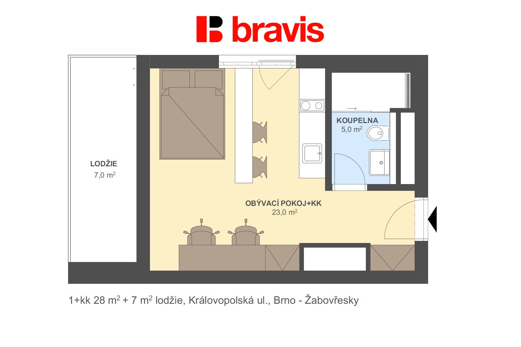 | Dispozice/podlahová plocha: | 1+kk/35 m² |