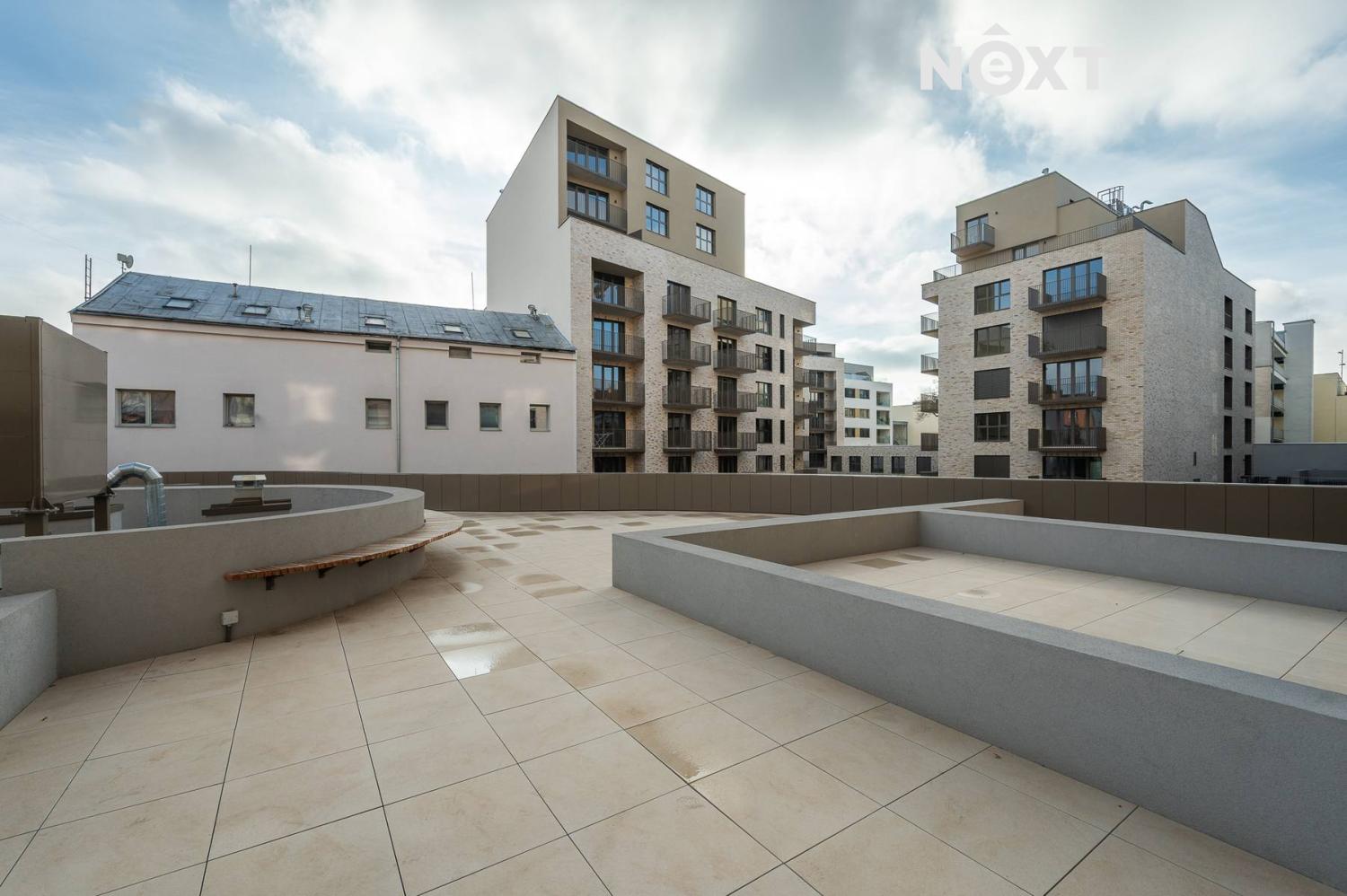 Dalším benefitem je sdílená střešní terasa o rozloze 725 m² s prostorem pro práci i odpočinek, stejně jako wellness a fitness centrum vybavené saunou, odpočívárnami, masérnou a samostatnou jógovou místností.