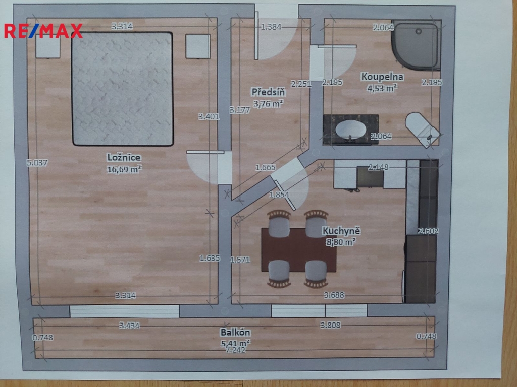 | Dispozice/podlahová plocha: | 1+1/38 m² |