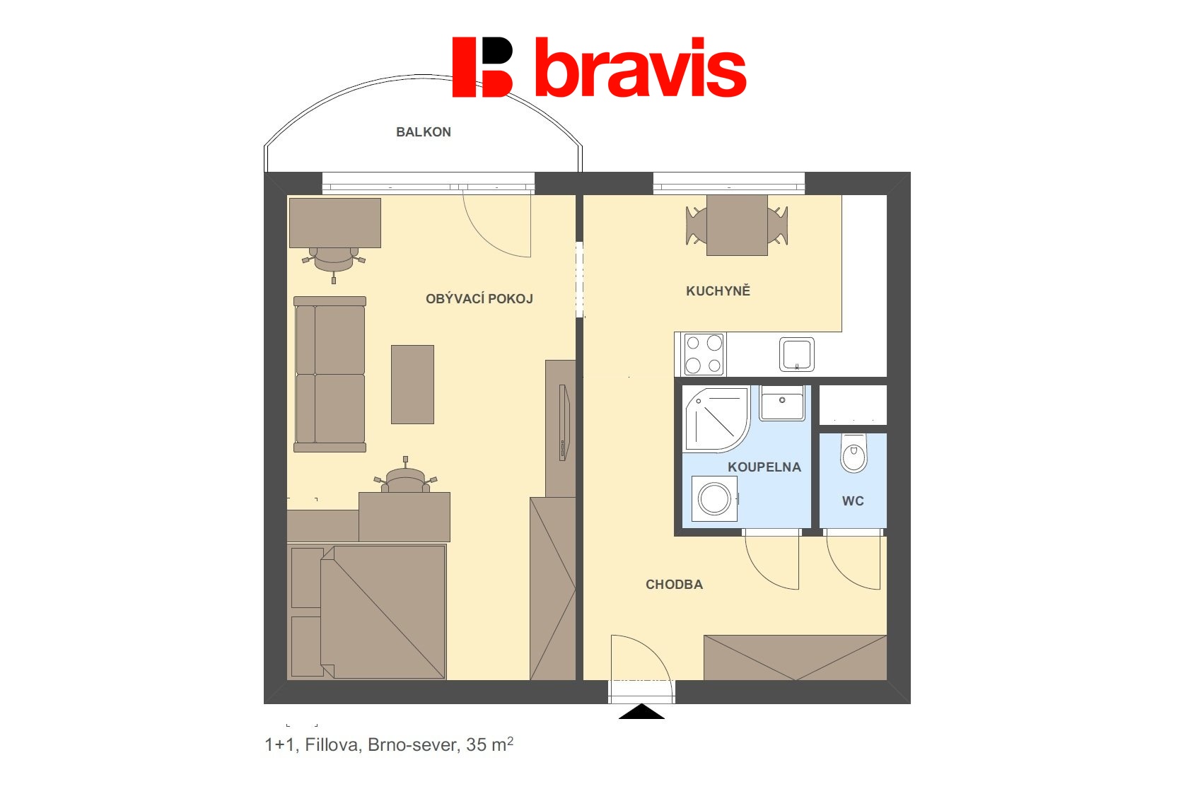 | Dispozice/podlahová plocha: | 1+1/35 m² |