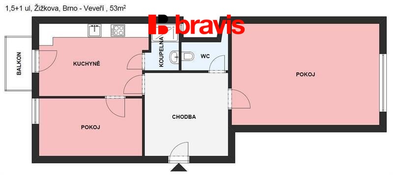 | Dispozice/podlahová plocha: | 1+1/53 m² |