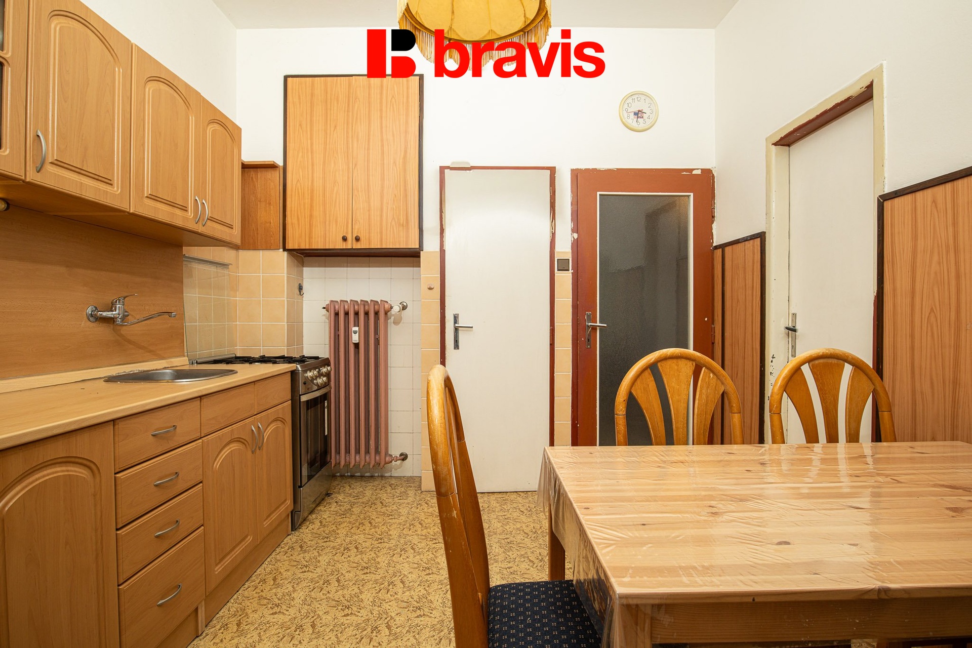 Nachází se zde i samostatná spíž a vstup na balkón orientovaný do vnitrobloku.