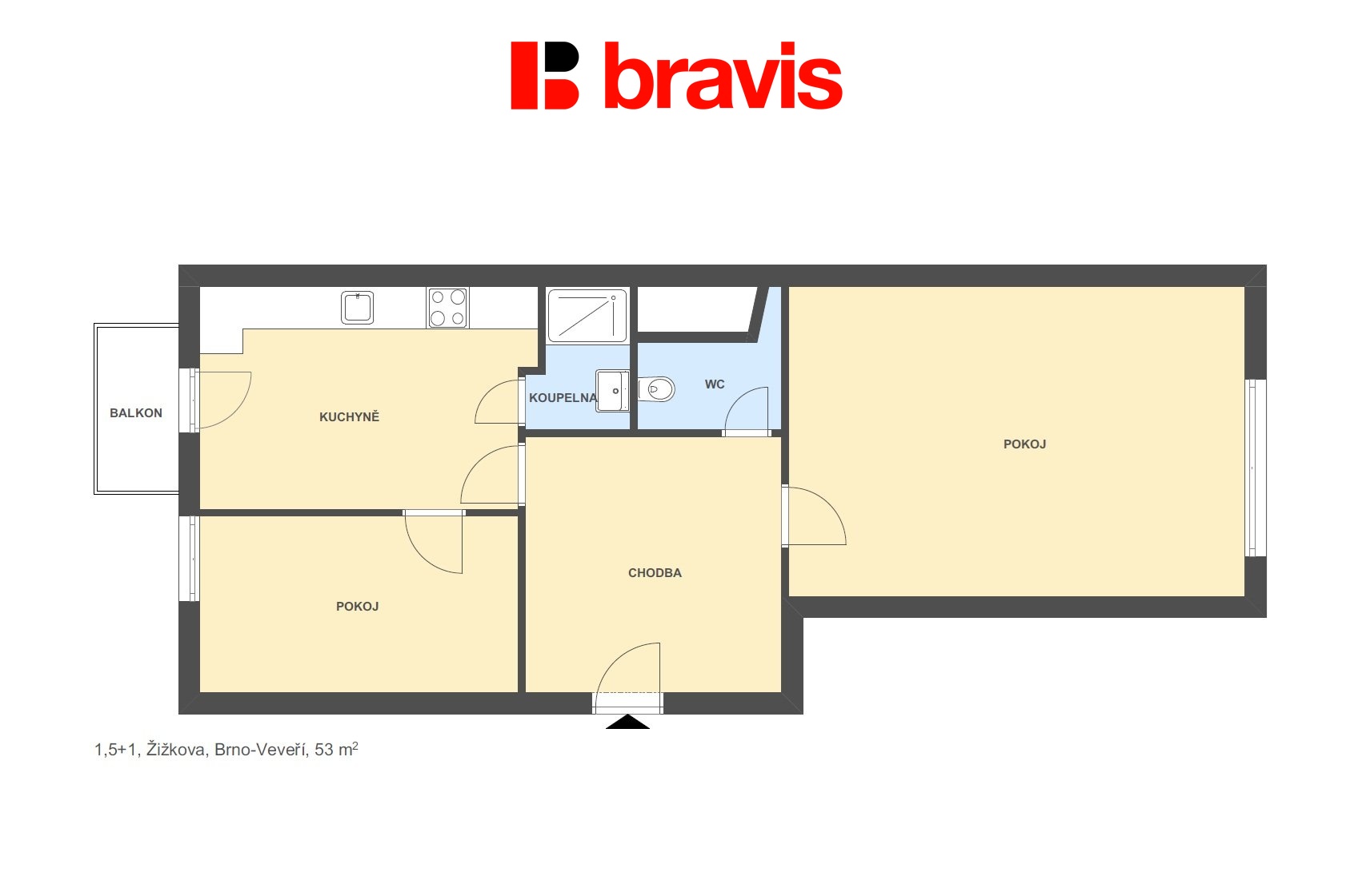 | Dispozice/podlahová plocha: | 1+1/53 m² |