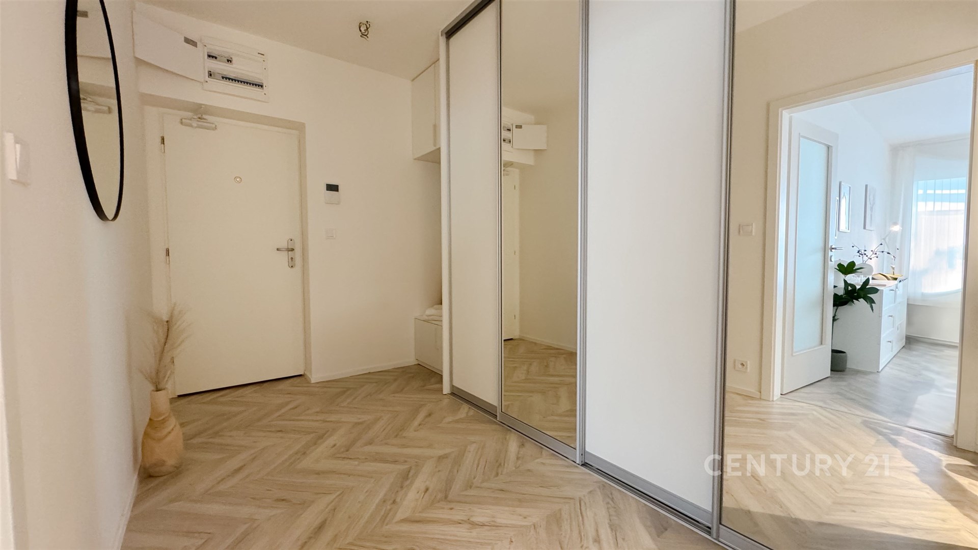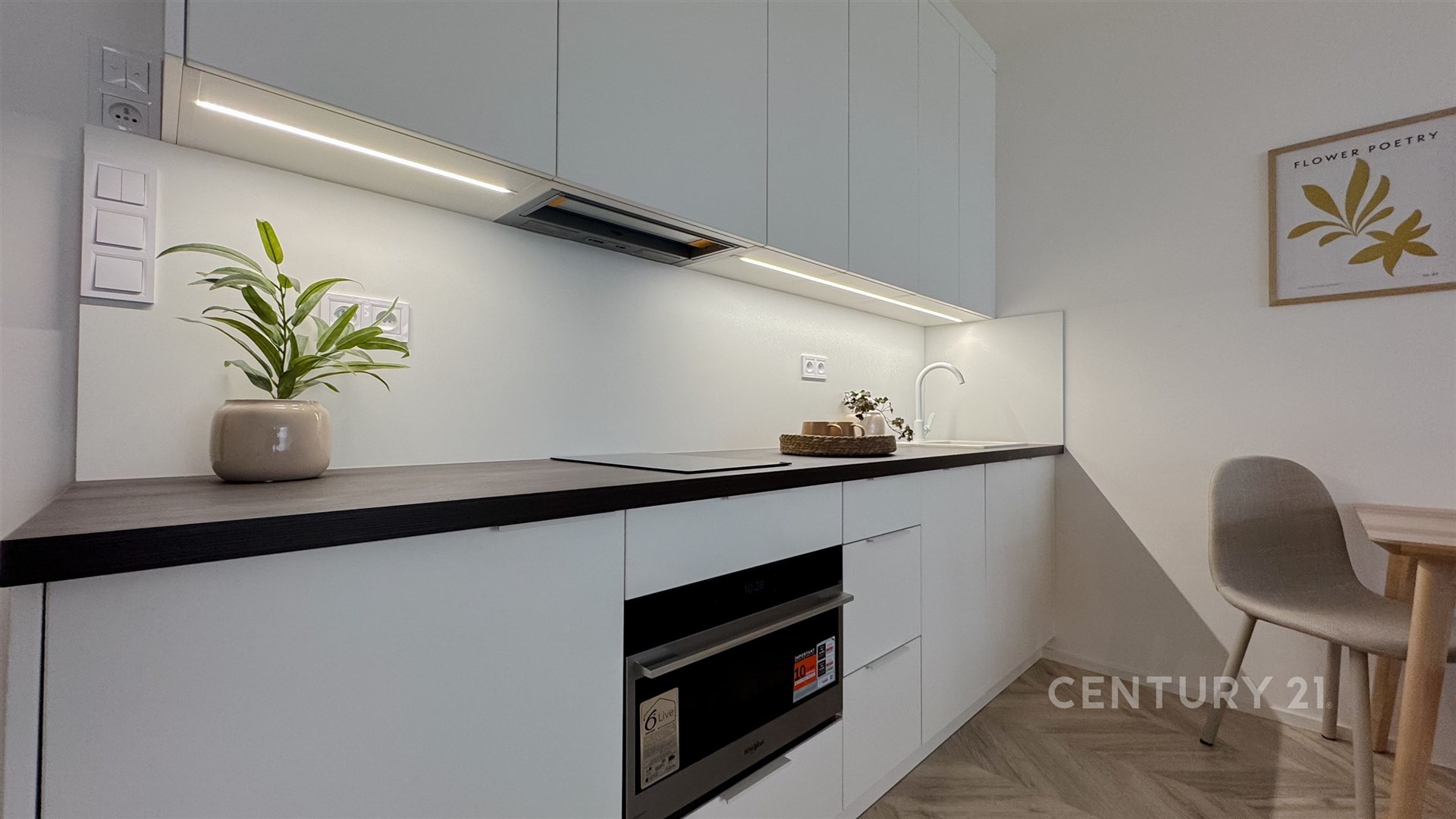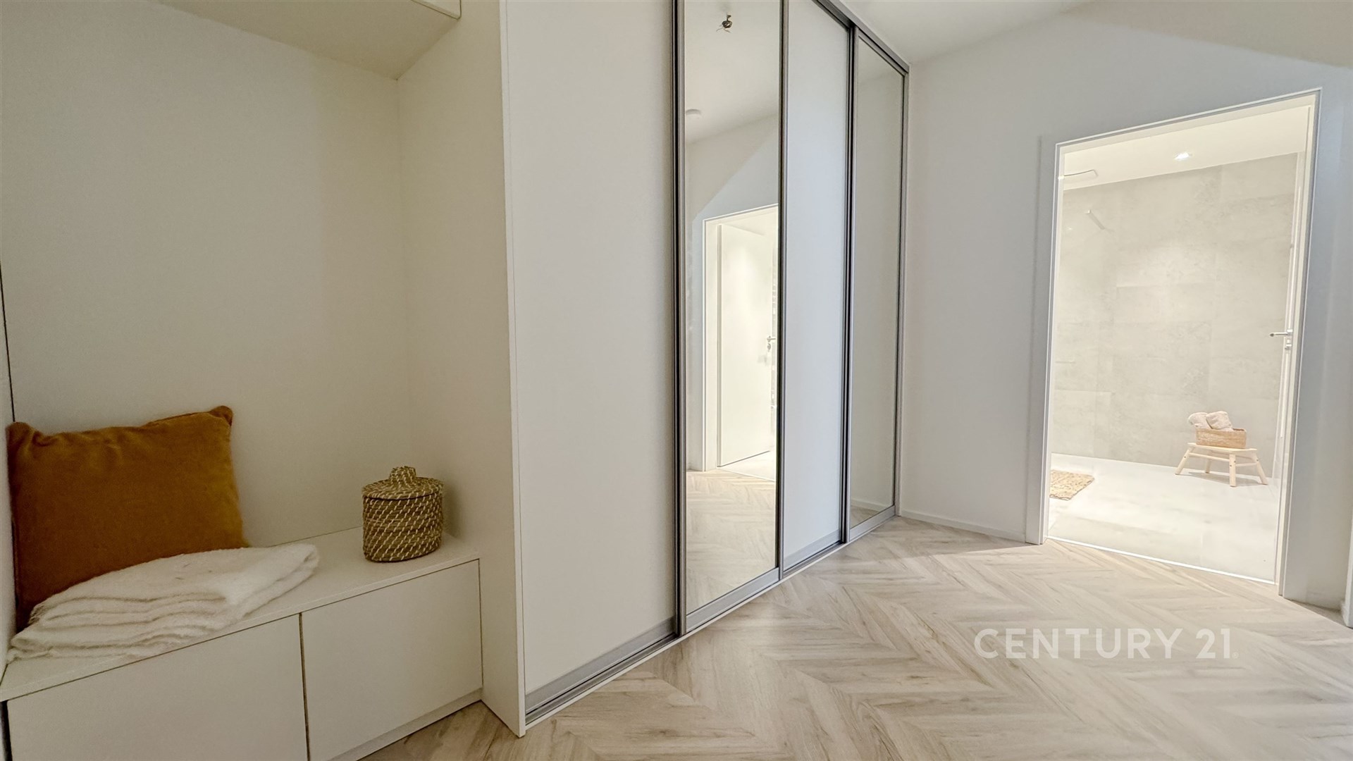 Vybavení: moderní kuchyňská linka se spotřebiči (lednice, indukce, kombinovaná mikrovlnná trouba s horkovzdušnou, myčka) vestavěné skříně, předokenní žaluzie, walkin sprchový kout, topný žebřík po dohodě je možné