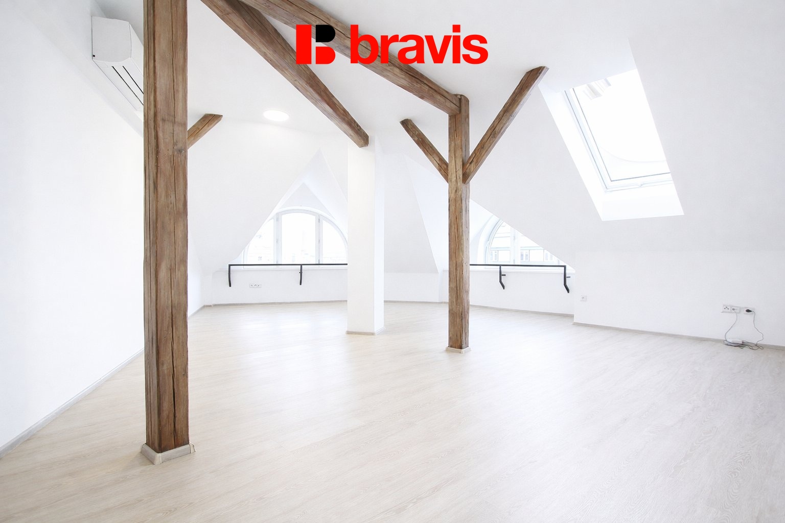 Pronájem bytu 1+kk, 58 m², Brno - střed, ulice Koliště, podkrovní byt, klimatizace, podlahové vytápě