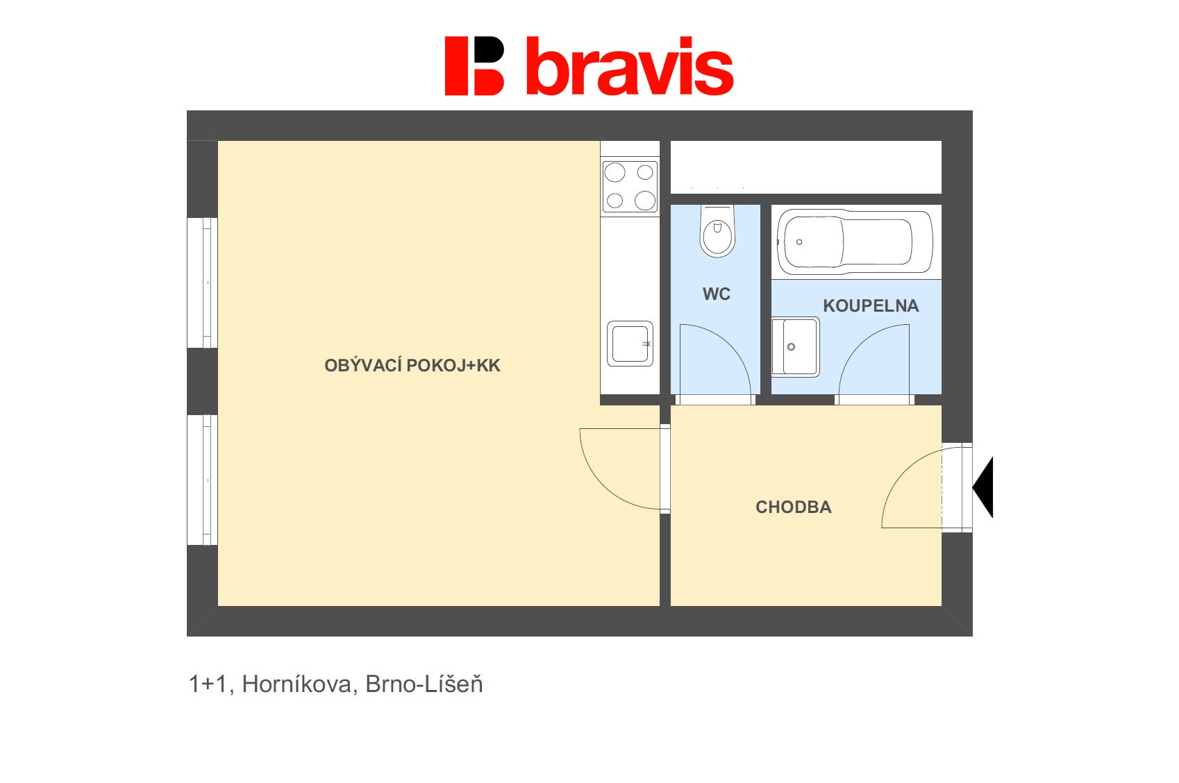 Ve výhradním zastoupení majitele nabízíme pronájem bytu 1+kk na ulici Horníkova v Brně - Líšni.