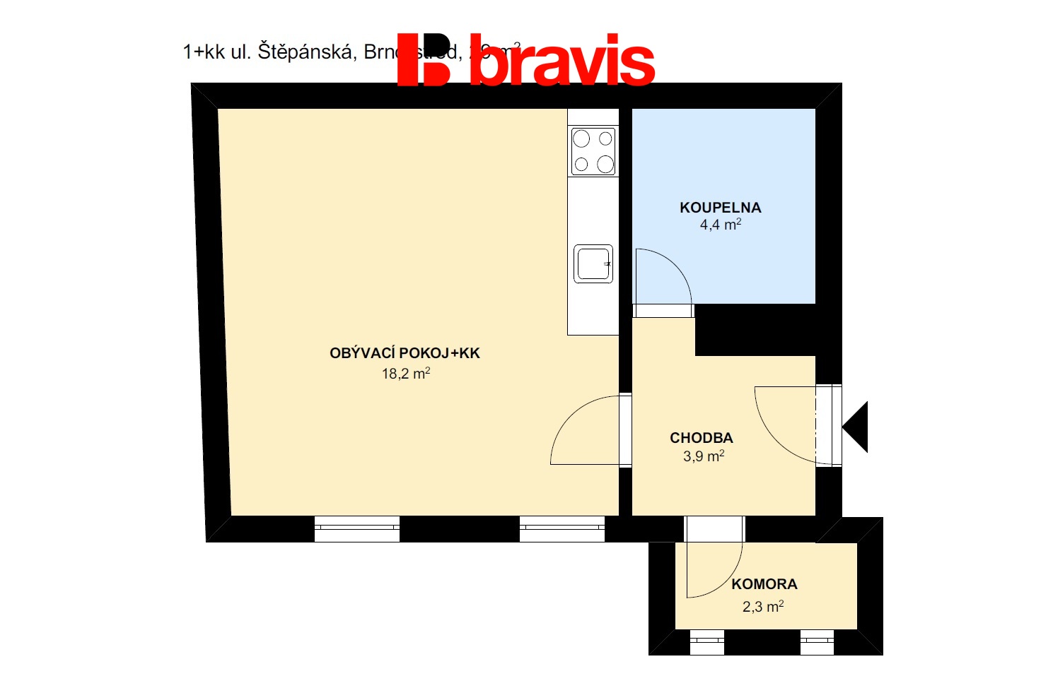 - Dispozice bytu: 1+kk