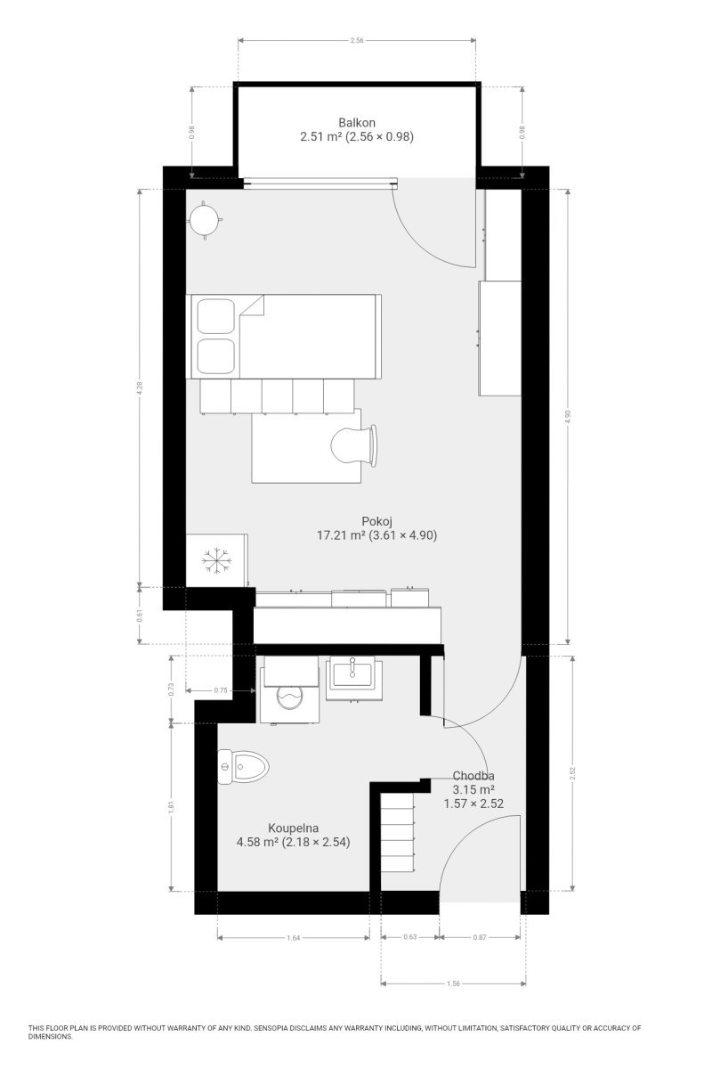 - Dispozice bytu: 1+kk