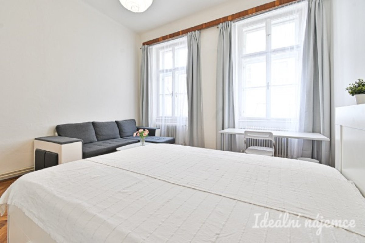 K dispozici jsou dva prostorné pokoje, které lze využít jako ložnici a obývací pokoj. Kuchyně je samostatná. Velká okna zajišťují dostatek denního světla a příjemnou atmosféru v celém bytě.