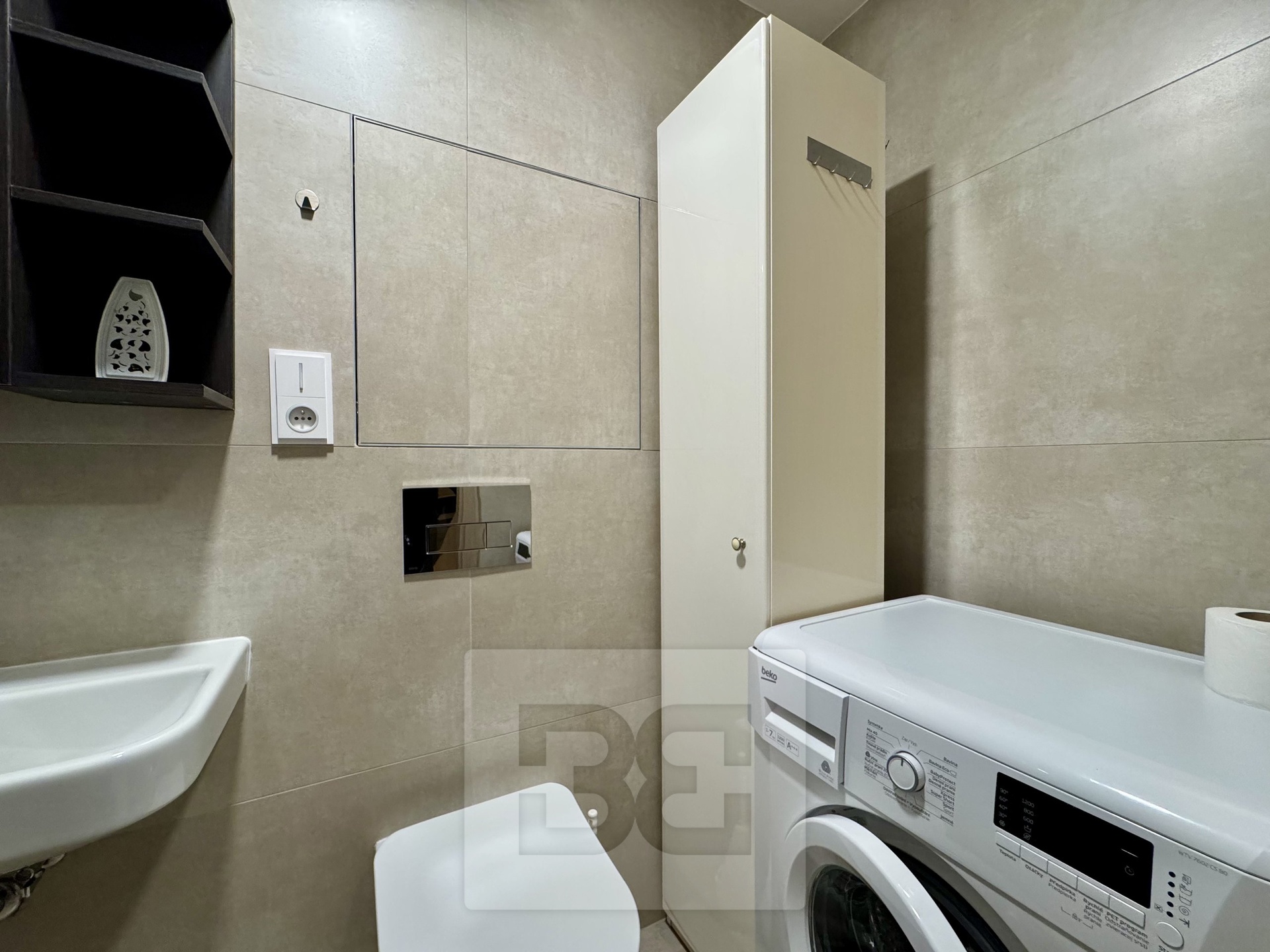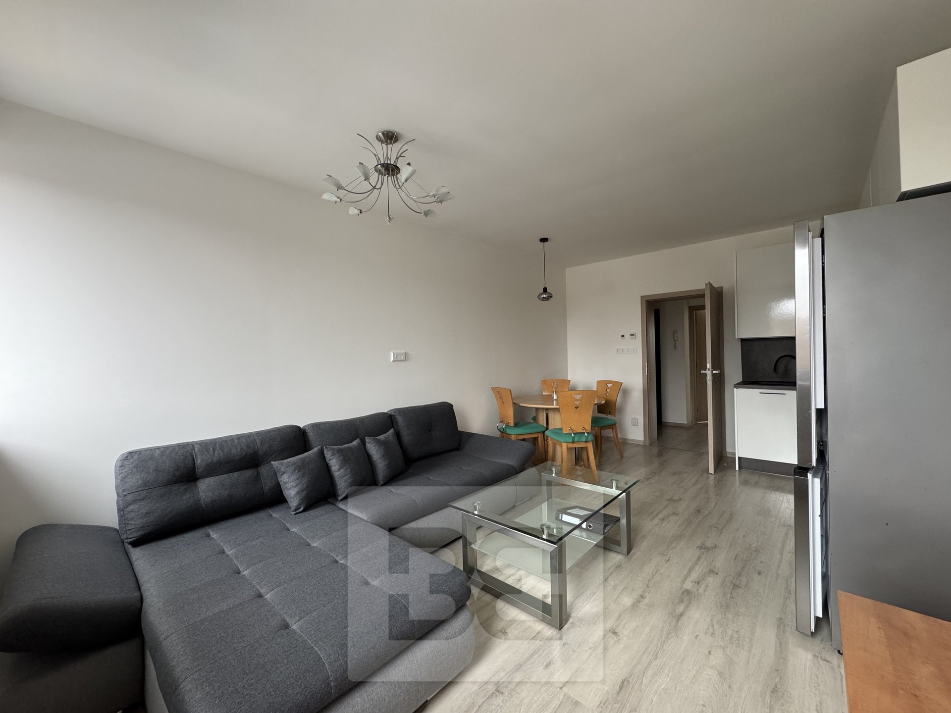 Byt je ve výborném stavu, působí velmi svěže a moderně. Dispozice bytu nabízí vstupní předsíň s úložným prostorem, obývací pokoj s kuchyňským koutem, který je kompletně vybaven spotřebiči, dále samostatné WC, prostornou koupelnu a samostatnou menší ložnici se skříní.