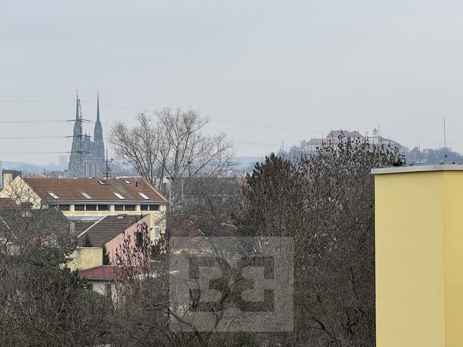 Okna z obývacího pokoje směřují do klidné ulice, ložnice má okna orientovaná do krásné, zelené zahrady s výhledem ( za dobrého počasí) na Petrov i Špilberk, což zajišťuje příjemné a tiché bydlení.