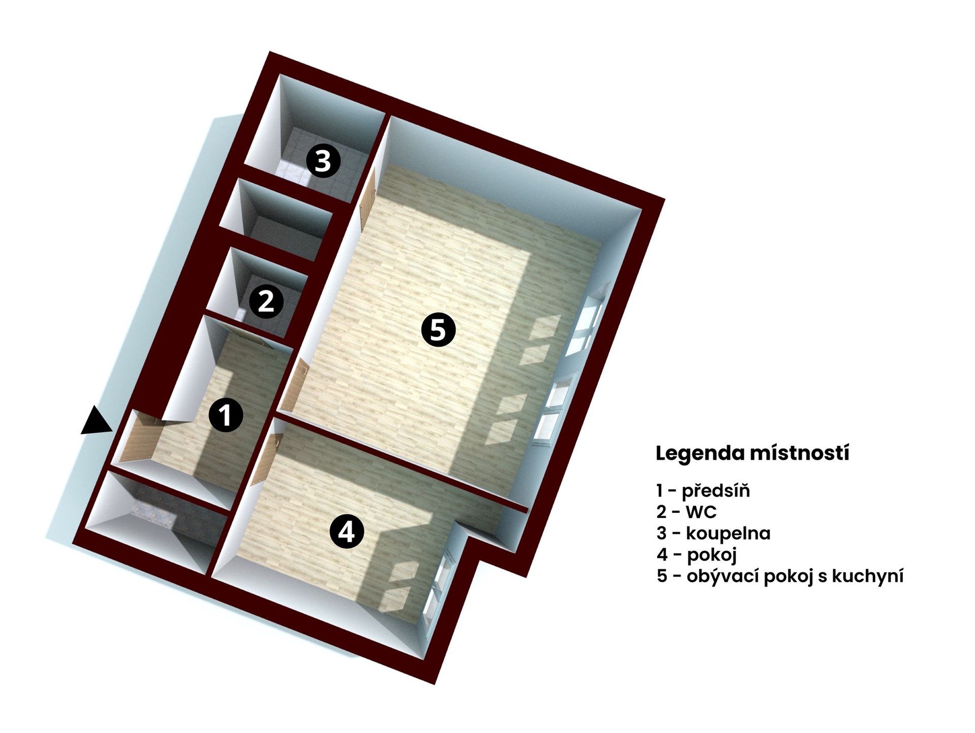 | Dispozice/podlahová plocha: | 2+kk/43 m² |