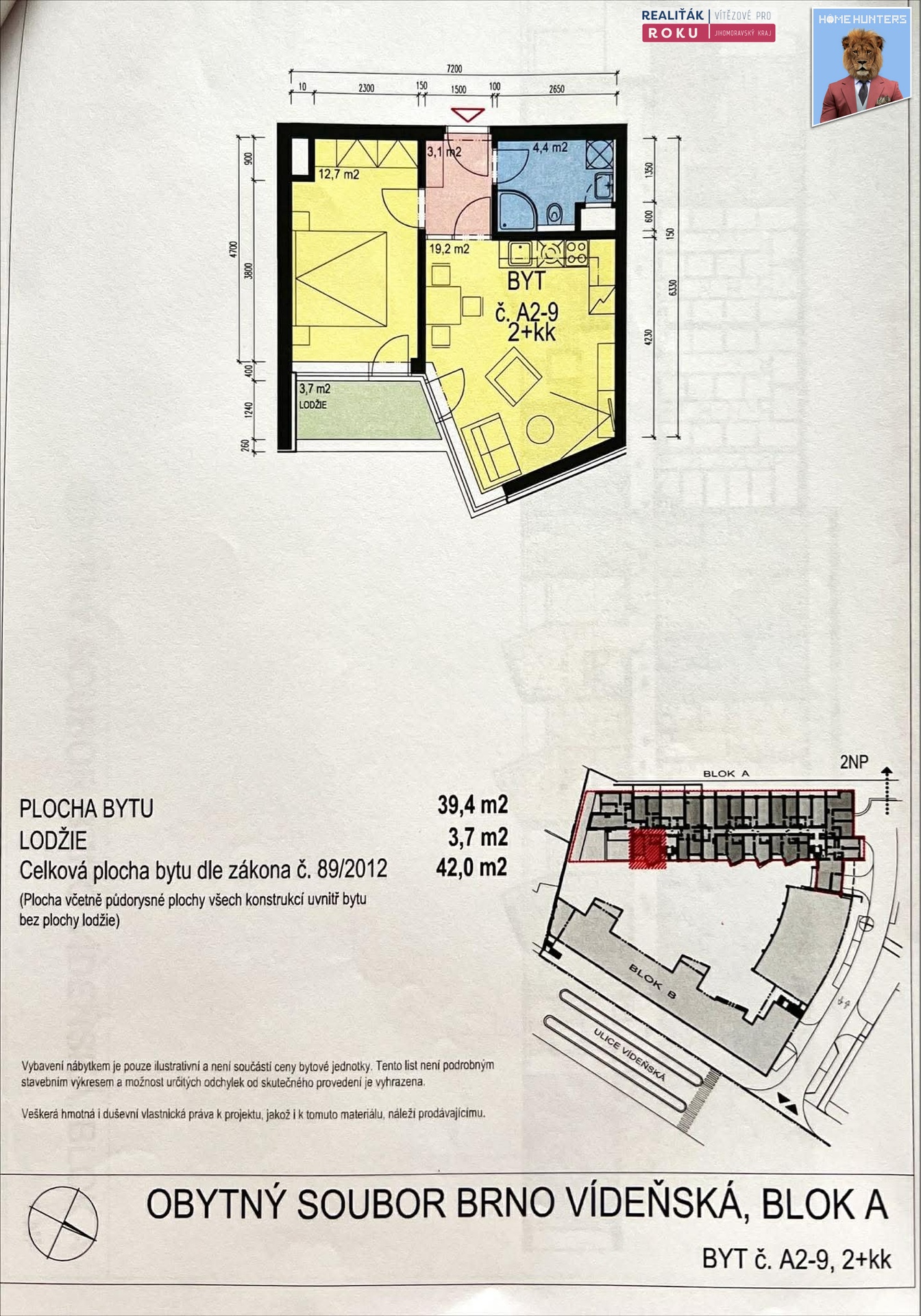 | Dispozice/podlahová plocha: | 2+kk/42 m² |