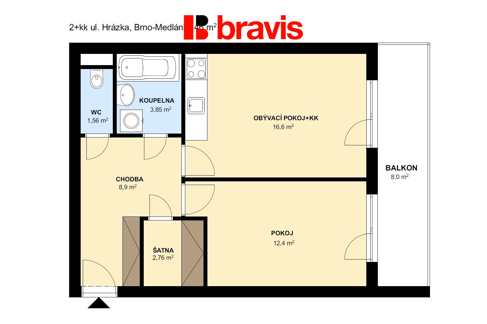 | Dispozice/podlahová plocha: | 2+kk/56 m² |