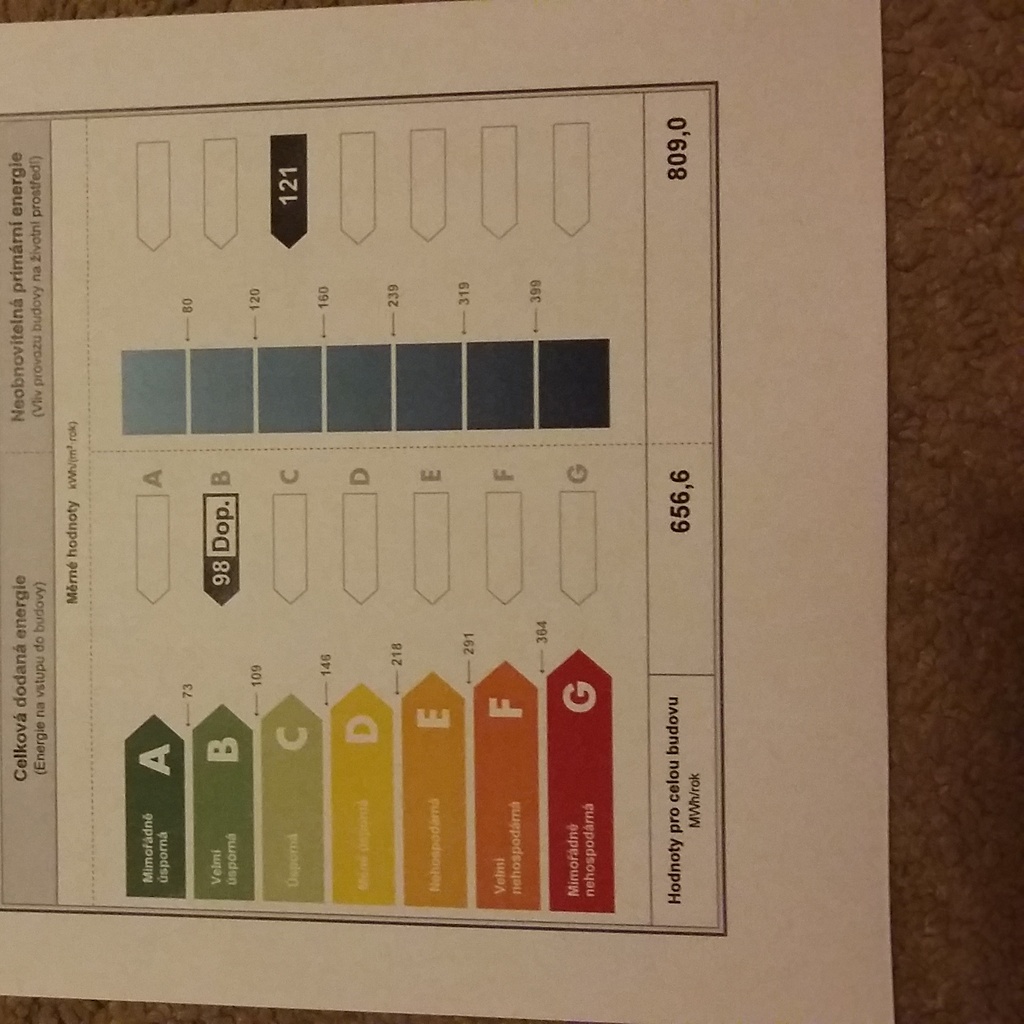 - Ukazatel energetické náročnosti budovy: 98 kWh/m²
