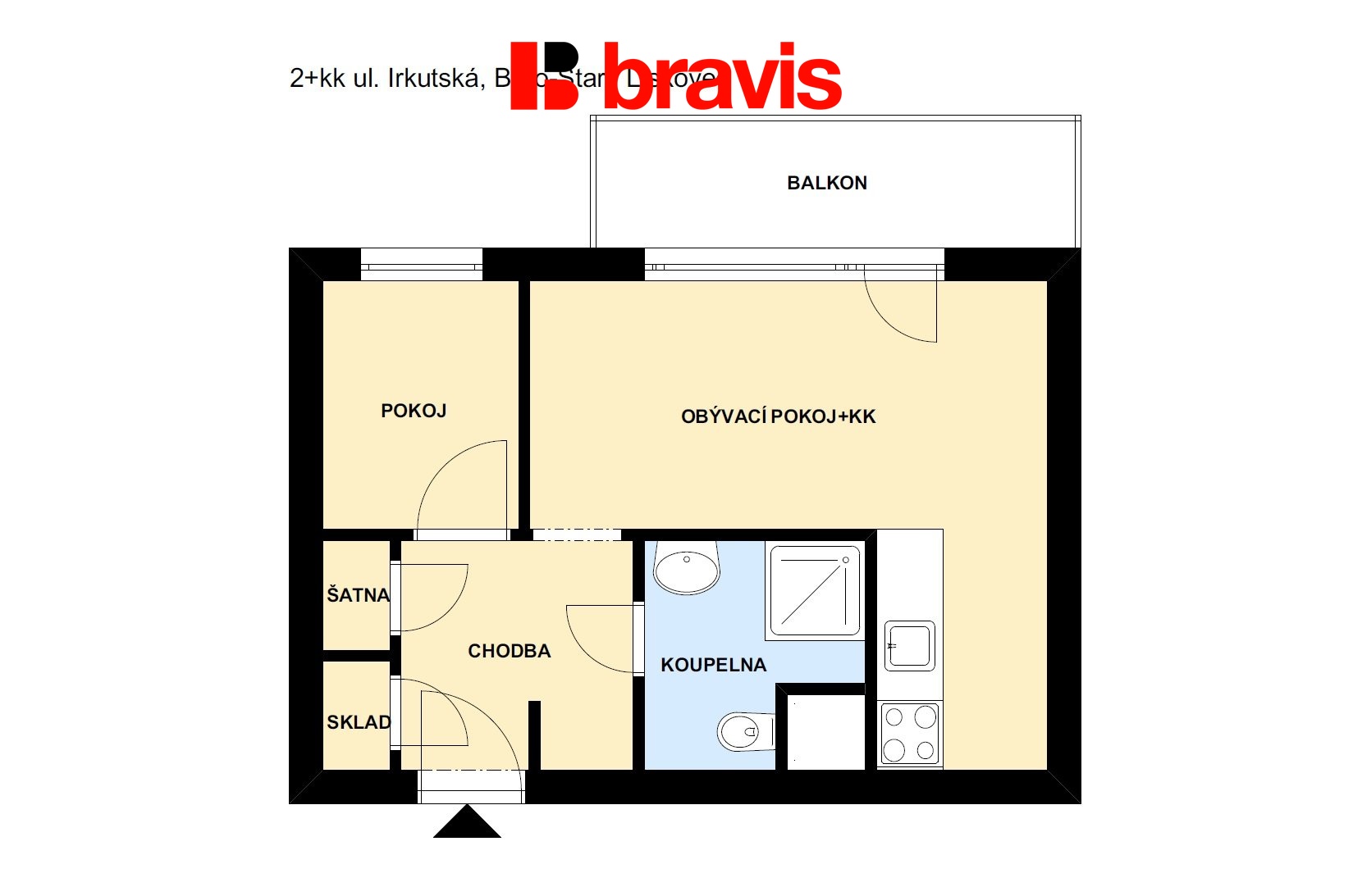 - Dispozice bytu: 2+kk