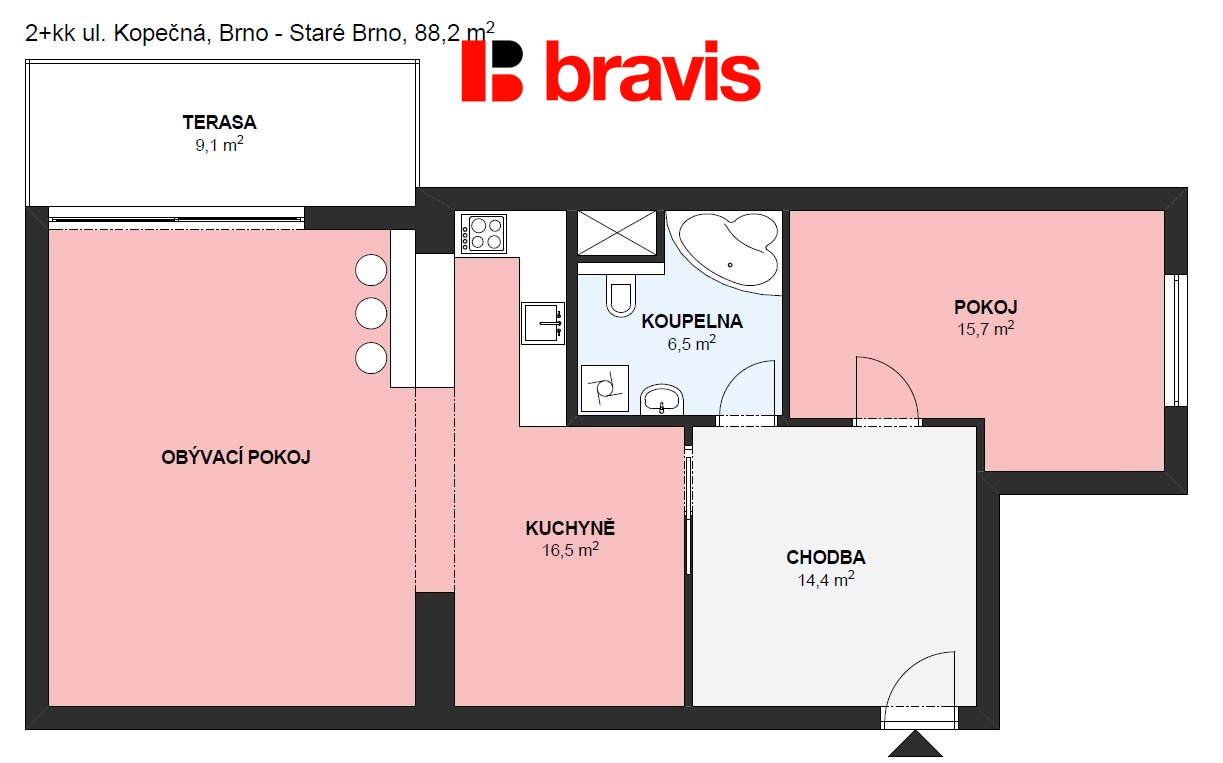 - Dispozice bytu: 2+kk