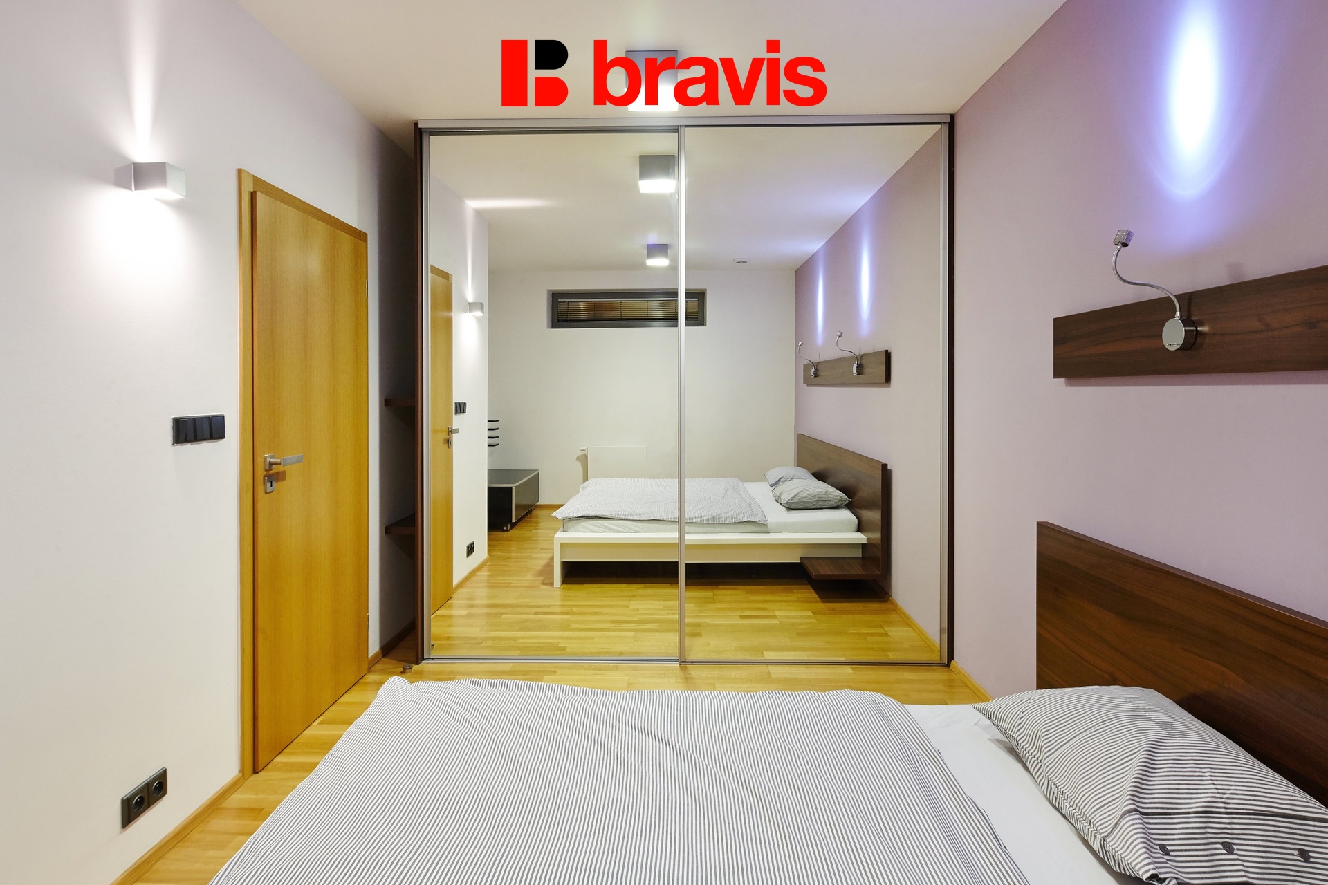 Kompletní vybavení bytu: Kuchyňská linka včetně všech spotřebičů (varná deska, trouba, odsávač par, lednice s mrazákem, mikrovlnná trouba, myčka nádobí), TV stolek, dvoulůžko včetně matrací, vestavěná skříň, pračka, umyvadlo, sprchový kout, WC, žaluzie, dřevěné dveře, dřevěné podlahy, světla.
