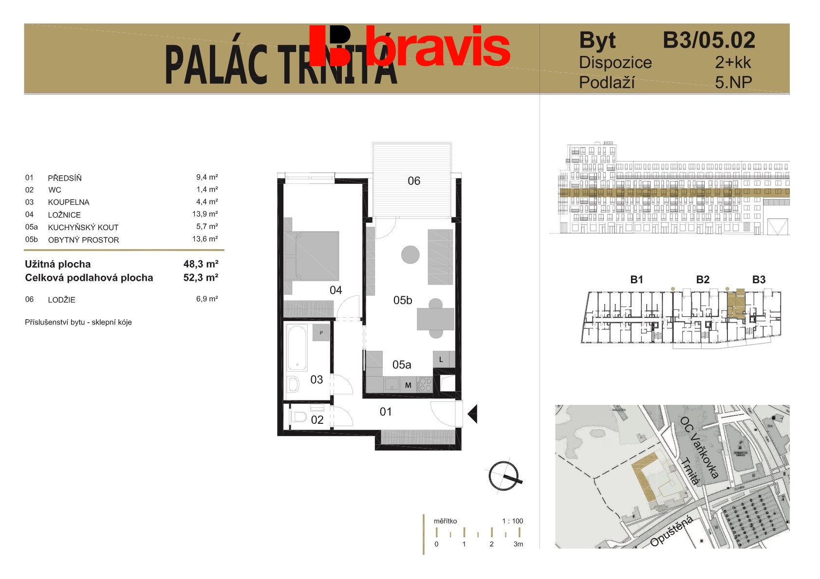 | Dispozice/podlahová plocha: | 2+kk/48 m² |