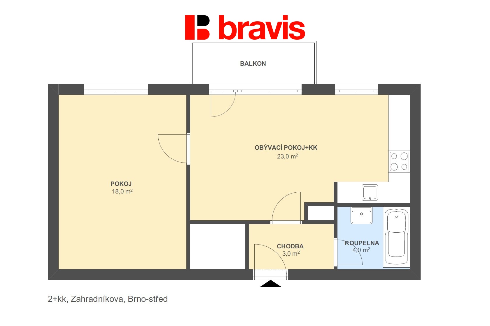 - Dispozice bytu: 2+kk