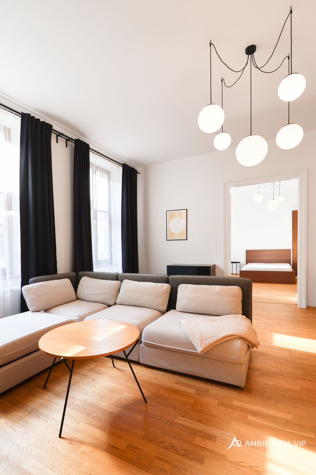 Byt o celkové podlahové ploše 143,49 m² se nachází v 2. nadzemním podlaží a nabízí velmi prostorné místnosti s vysokými stropy, které dodávají interiéru vzdušnost a reprezentativní charakter. Celý prostor zároveň nese jedinečný genius loci tohoto domu. Prostory bytu jsou kompletně zařízené a připravené k okamžitému nastěhování.
